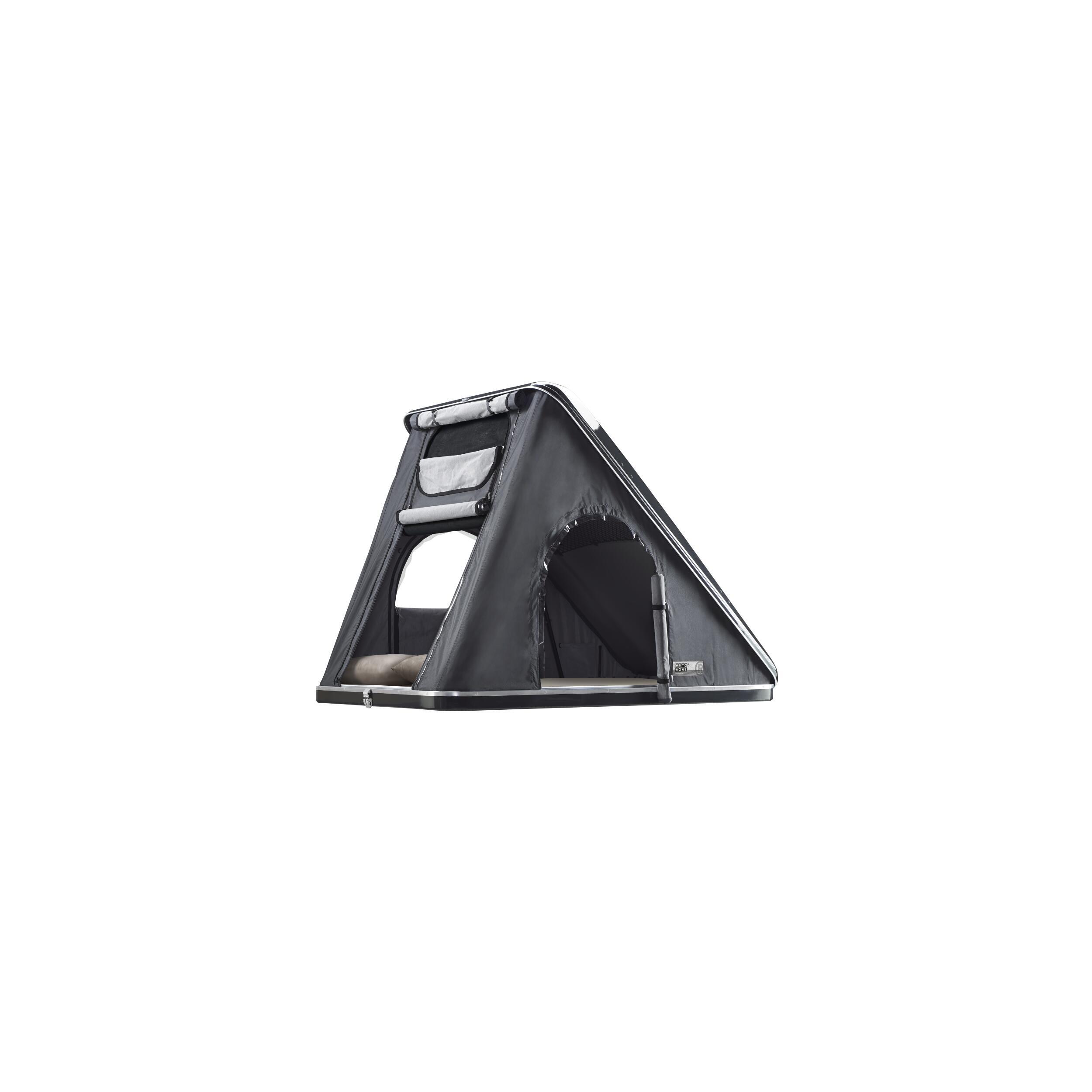 Tente de toit rigide avec ouverture automatique à vérins, grande ouverture arrière modulable, tissu Airtex respirant et confort premium pour tous les terrains.