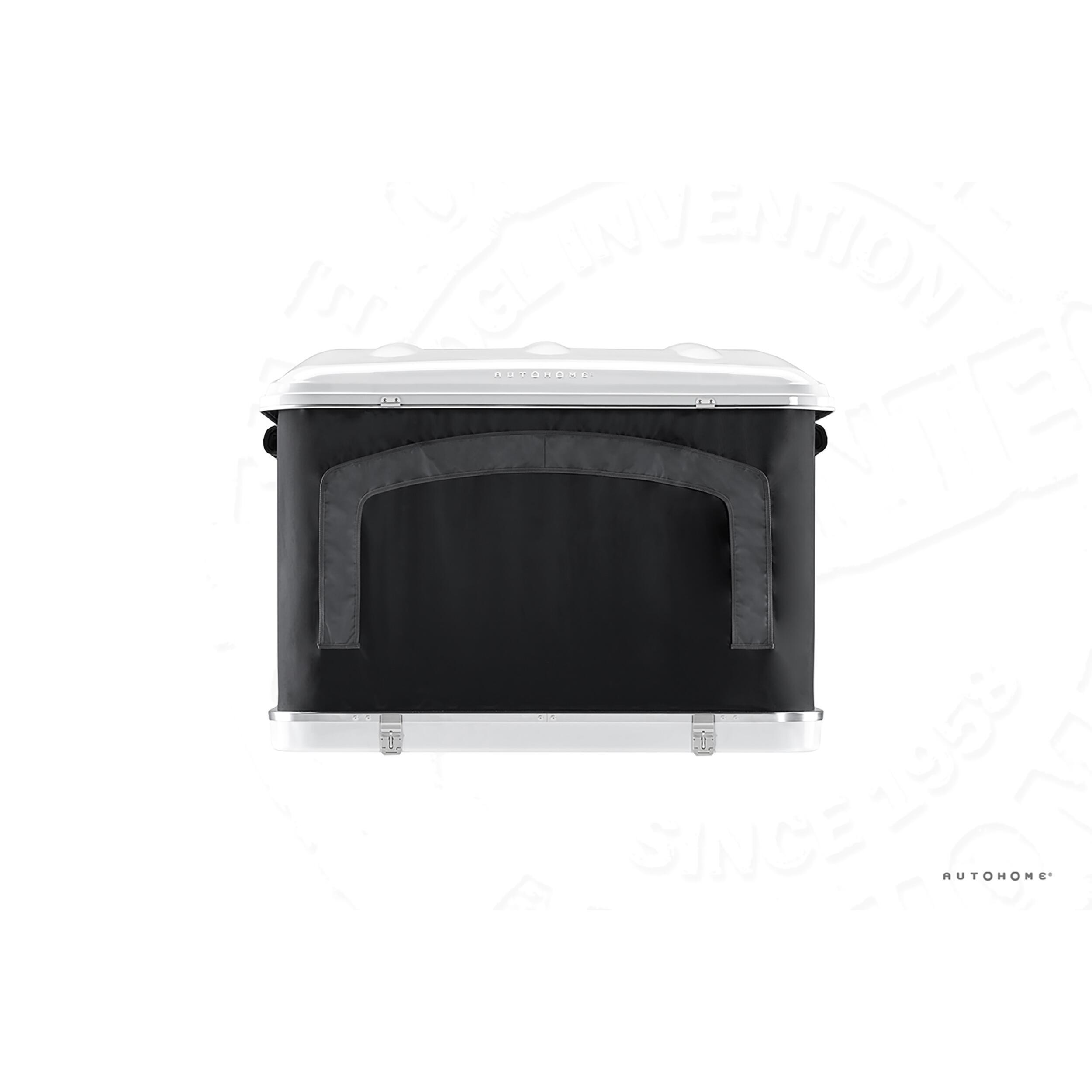 Tente de toit rigide à ouverture automatique par vérins, vue panoramique à 360°, moustiquaire occultante, design compact et confort optimal, prête à l’aventure.