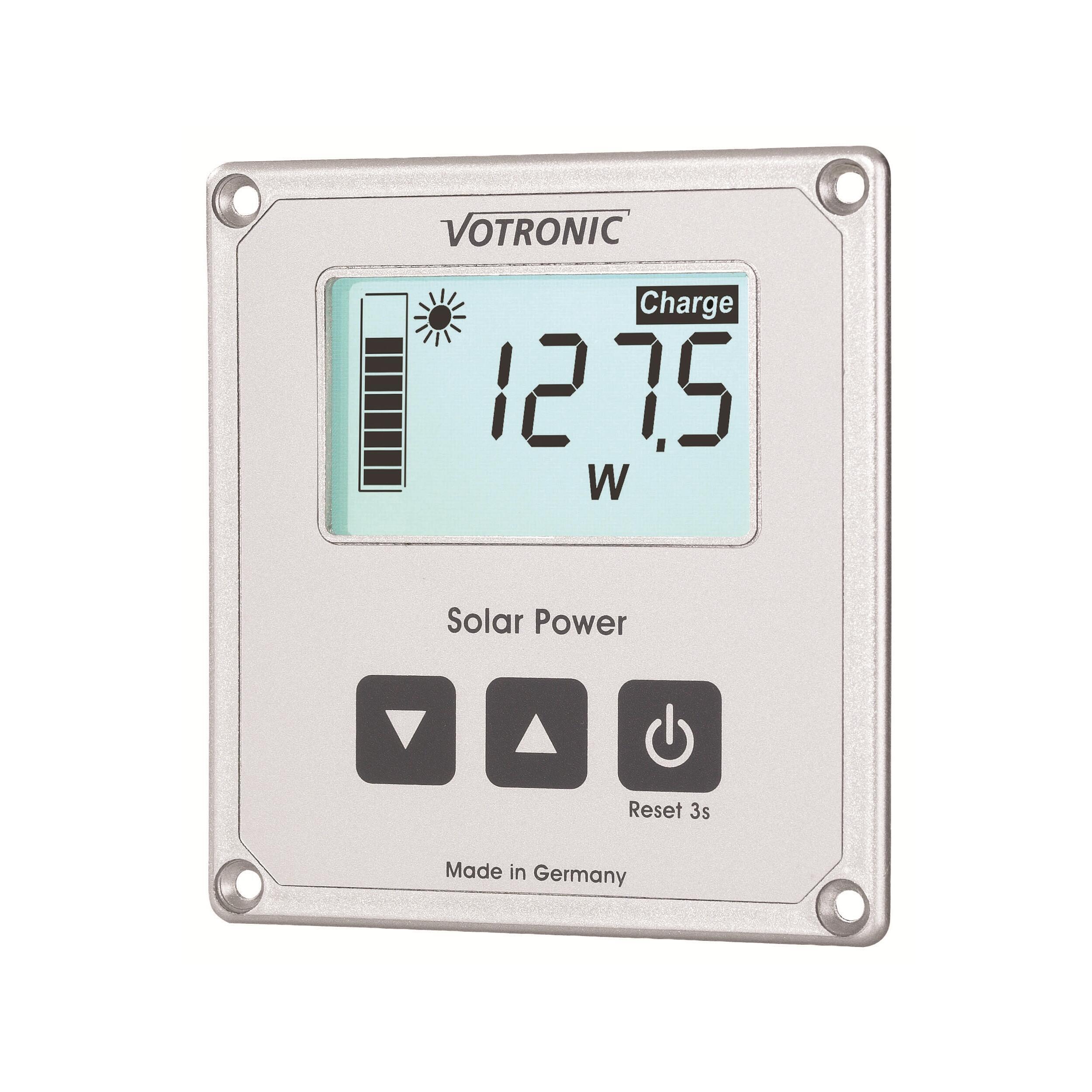 Connecté au régulateur de charge Votronic, il affiche en temps réel toutes les informations de fonctionnement de votre panneau solaire. Puissance et courant instantanés, tension de la batterie, production solaire.