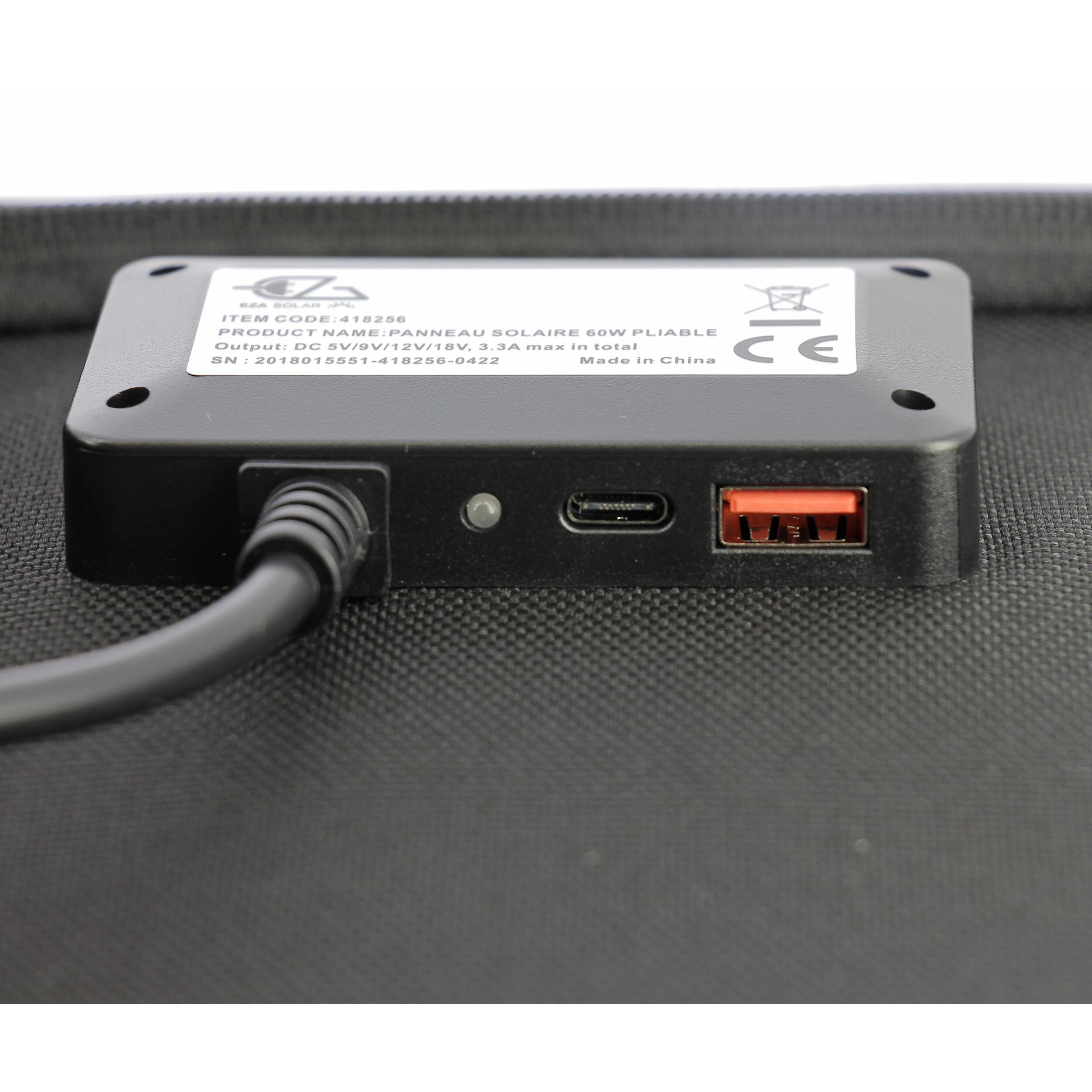 Le panneau solaire pliant EZA est conçu pour les amateurs de voyages en autonomie. Grâce à ses cellules monocristallines haute performance, il atteint un rendement de 20%, garantissant une puissance jusqu’à 100W pour recharger vos appareils électroniques et batteries auxiliaires. Son design compact et léger en fait un allié incontournable pour le camping, les road trips en van ou encore les activités de plein air.