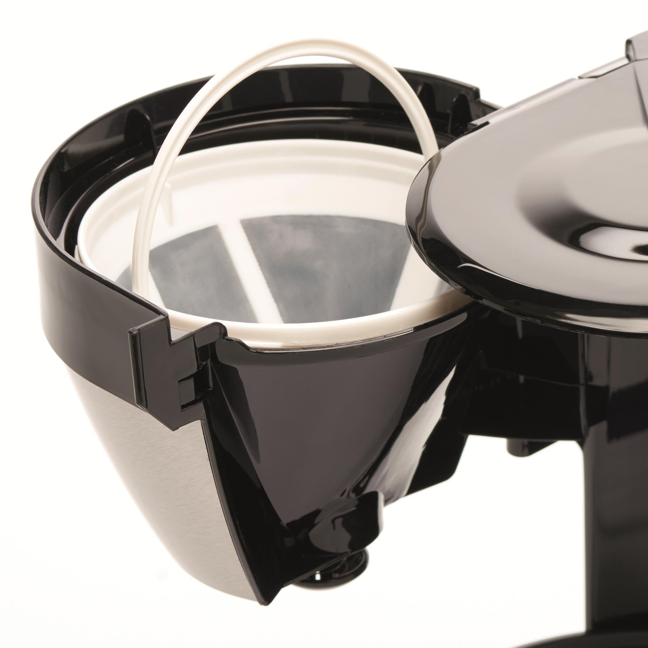 Sa plaque chauffante avec thermostat permet au café de rester chaud, elle possède un filtre à café pivotant facile d’accès ainsi qu’un système d’arrêt automatique pour éviter toute surchauffe.