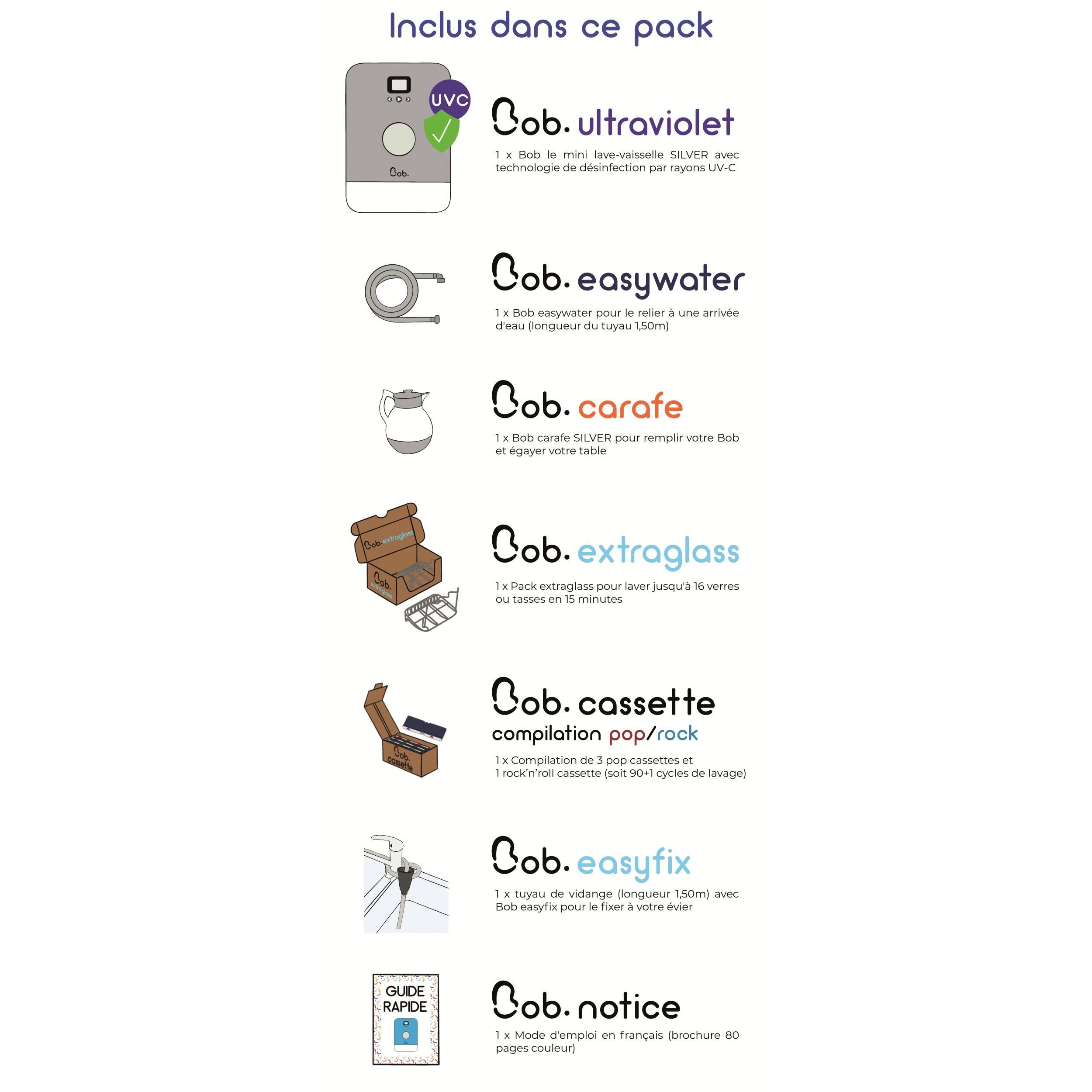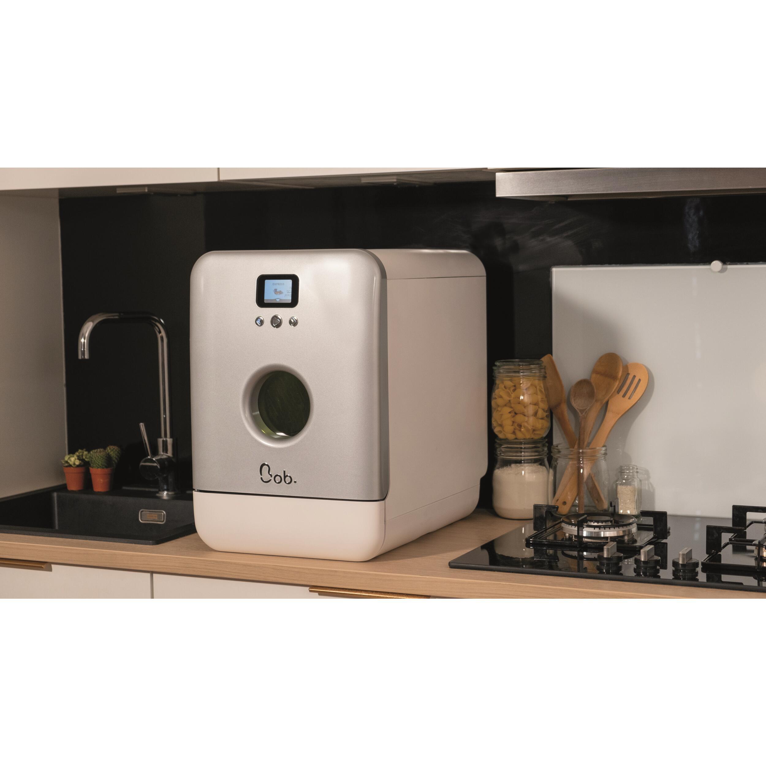 Laissez-vous surprendre par Bob, le lave-vaisselle adapté aux petits espaces. Petit par la taille, grand par la contenance ! Bob mesure seulement 34 cm de large mais peut accueillir des assiettes jusqu’à 29 centimètres, une première pour un lave-vaisselle de cette taille ! Avec son réservoir intégré, pas besoin de faire de plomberie chez soi, Bob est le premier lave-vaisselle autonome et ultra-compact. Bob lave la vaisselle quotidienne d’1 à 2 personnes en seulement 20 minutes. Simple d'utilisation : Bob vous dit tout sur son écran LCD de 2,4 pouces.