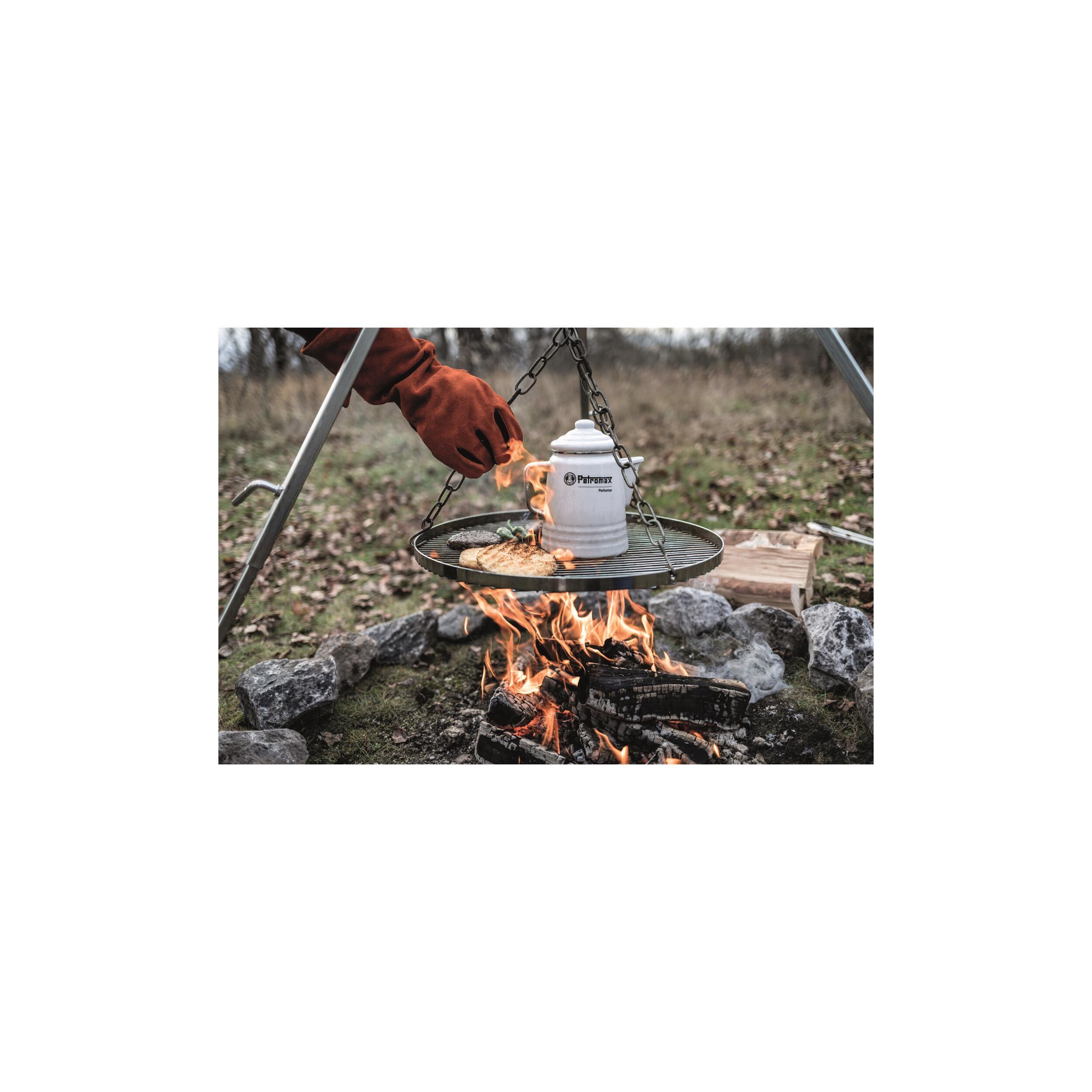 Pour les amoureux de nature, le percolateur Petromax peut être suspendu directement au-dessus des braises ou d’un feu ouvert grâce à son anse solide. En plus d’être un outil fonctionnel, il ajoute une touche de charme rustique à vos moments autour du feu.