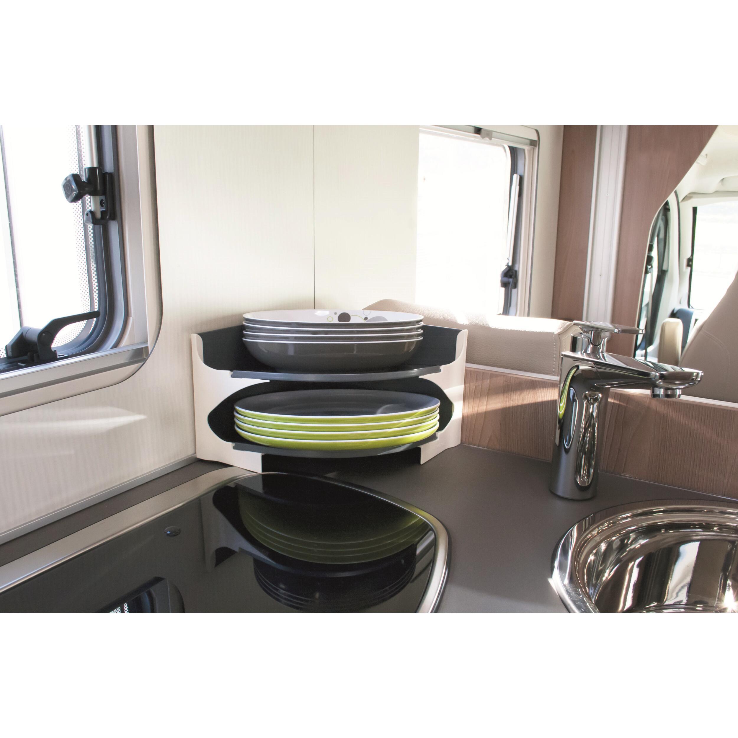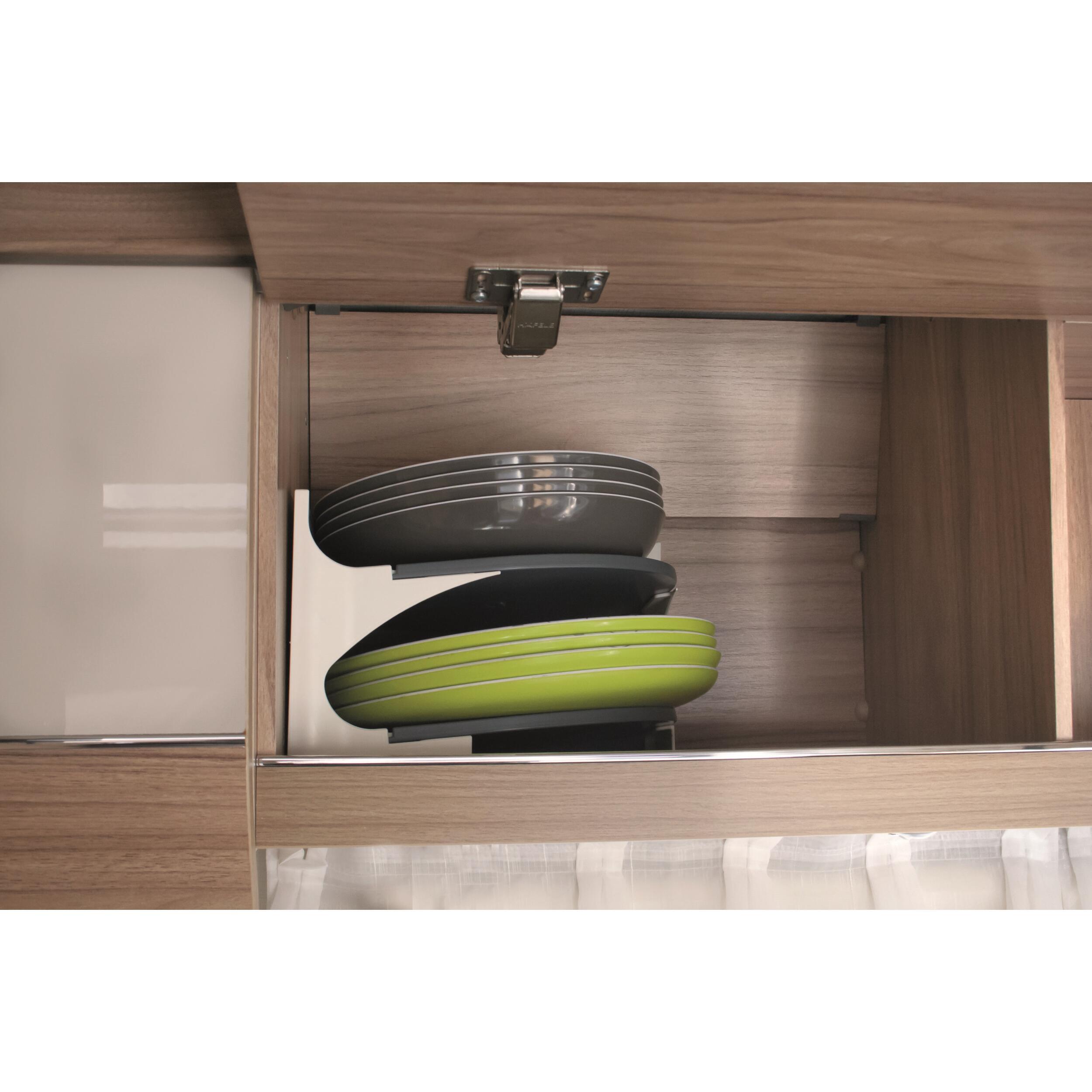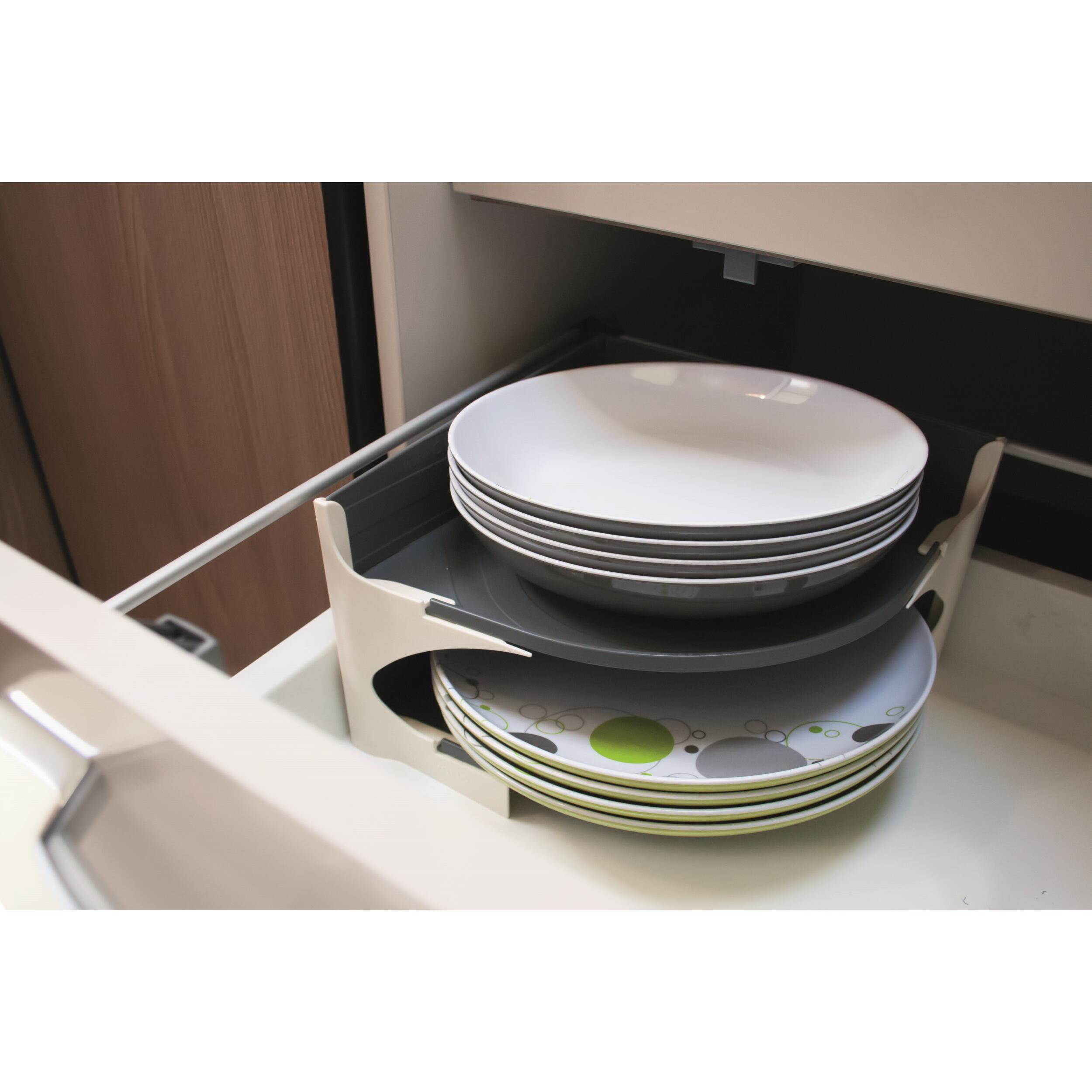 Le porte-assiettes PurVario conçu pour les coins de vos placards est sur étages légèrement inclinés afin d'assurer un gain de place et sécuriser vos assiettes.