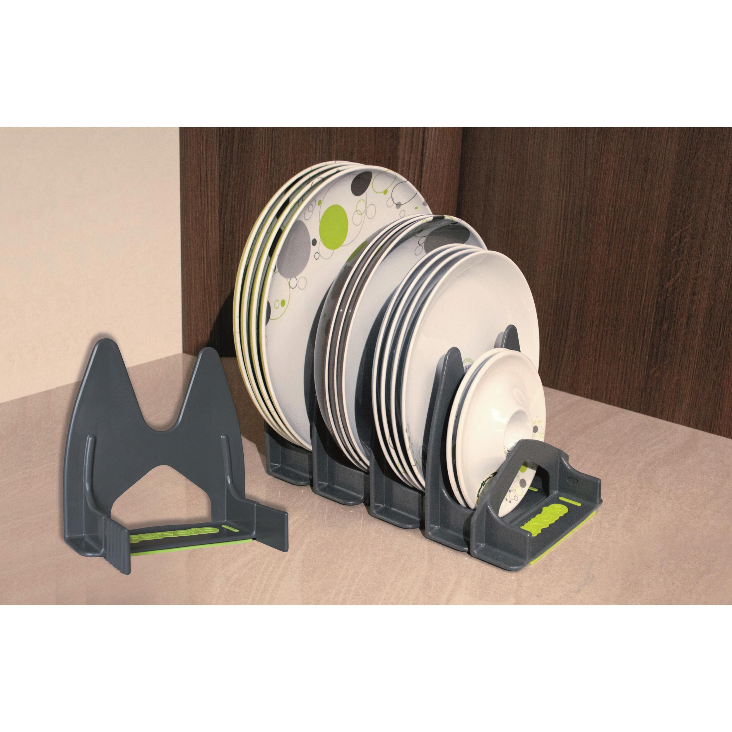 Par simple encliquetage, ce range-assiettes s'adapte à votre vaisselle afin d'en assurer le transport sans dommage ni bruit ! Il est idéal pour les assiettes, plats, planches à découper, plaques, dessous de plats, boîtes de rangement plates…