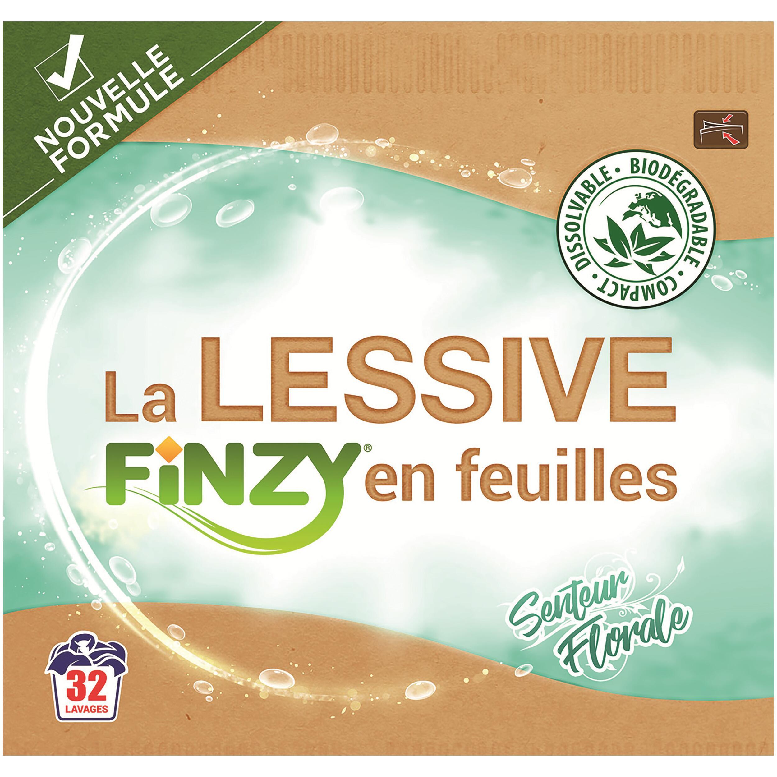 La lessive en feuilles Finzy est ultra concentrée, efficace sur les taches, respectueuse des couleurs, écologique, et se dissout sans trace pour un usage en machine ou à la main.