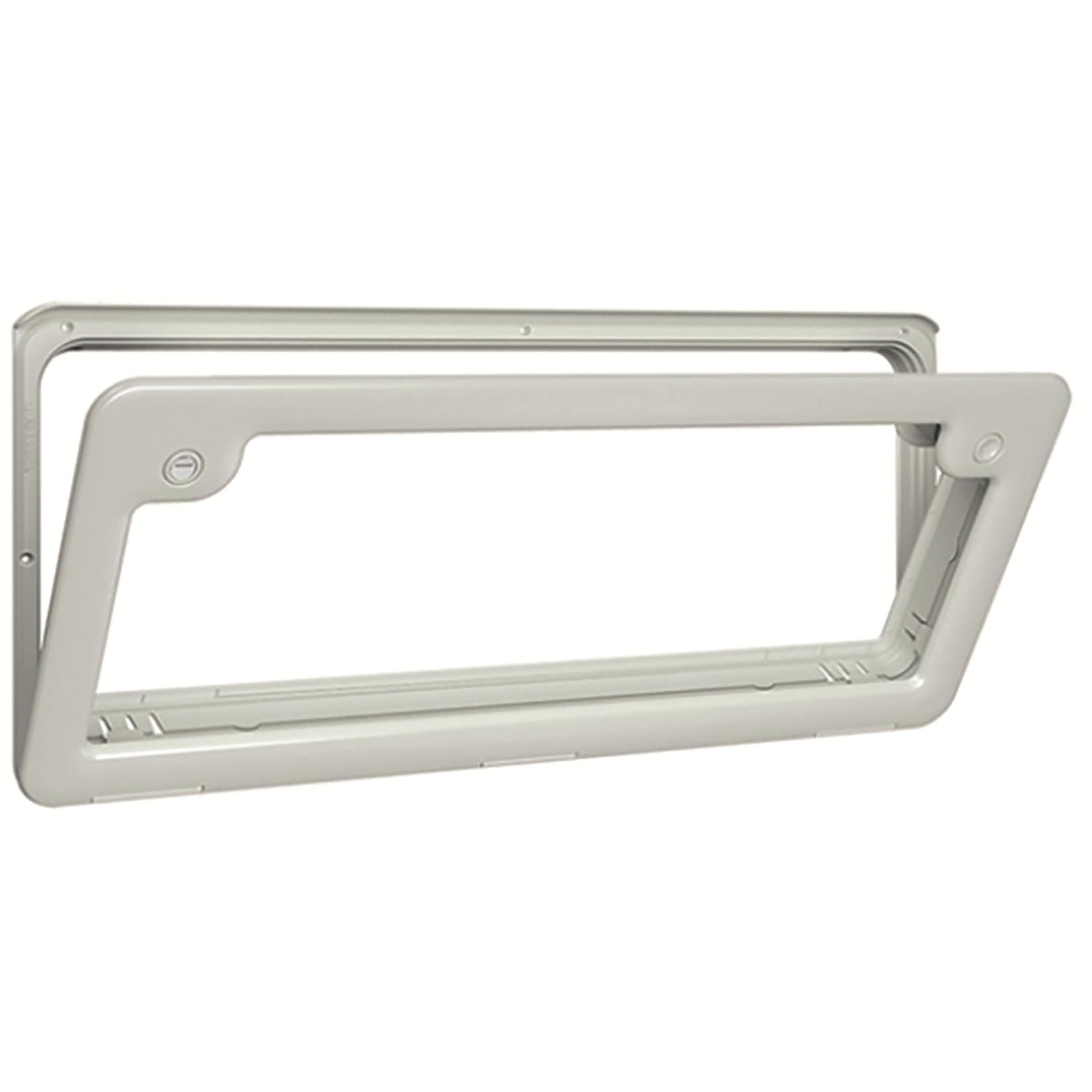 Avec cadre ouvrant et dormant en plastique renforcé et serrure à barillet démontable.