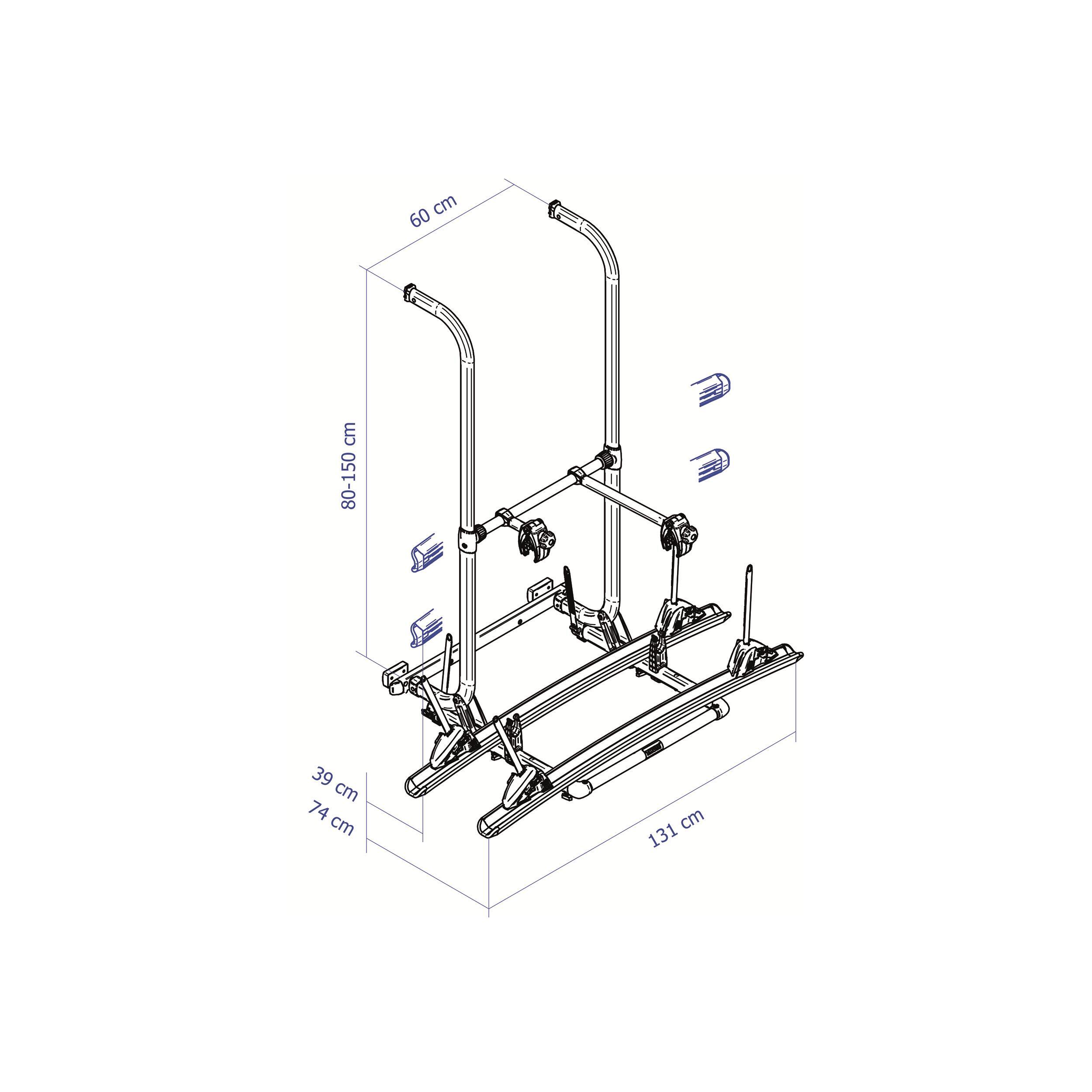 Version spéciale du modèle Elite G2 prévue pour le montage sur pattes de fixation Hymer pré-montées sur certains véhicules. Uniquement en version Standard. Porte 2 vélos avec cadre en aluminium. Transformable en porte 3 ou 4 vélos. La plateforme est verrouillable et parfaitement stable pendant la route : fixation optimale des vélos. Les rails coulissent de gauche à droite facilitant ainsi le positionnement des vélos. Les supports de roues coulissent également pour faciliter le placement du vélo. Possibilité de verrouiller les barres de maintien grâce aux serrures antivol compatibles.