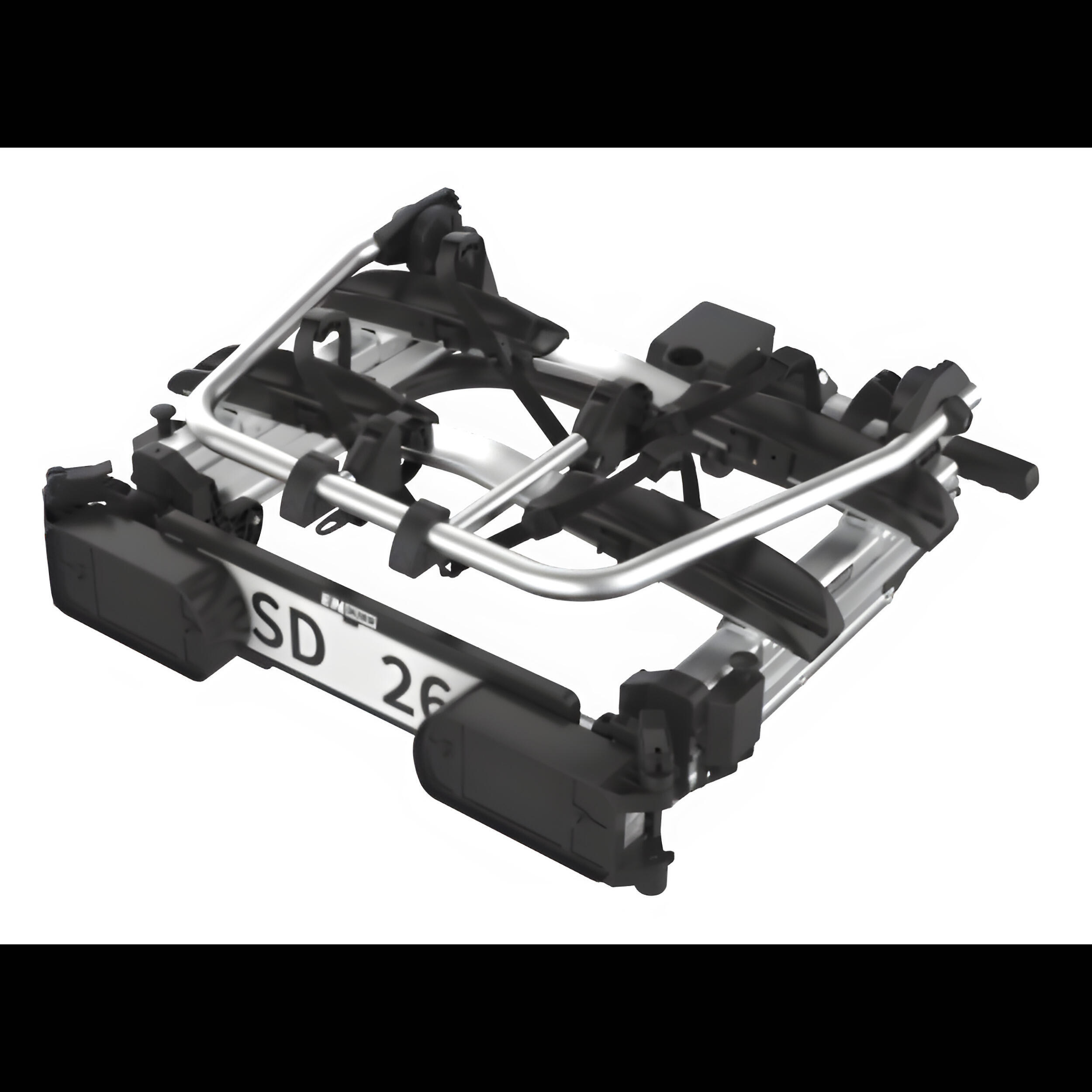 Plus besoin de démonter les vélos pour accéder au coffre ou à la soute ! Cette ingéniosité technique en fait un modèle parfaitement adapté aux véhicules tels que les fourgons aménagés, vans, SUV, breaks ou camping-cars, avec une compatibilité étendue jusqu’à 85 cm de porte battante.