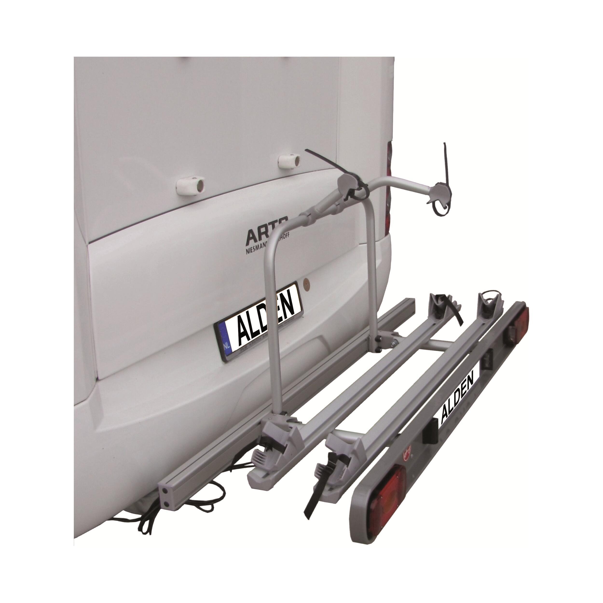 Porte-vélos sur châssis fiable, solide et raffiné grâce à ses feux de forme ovale. Sa structure en acier est complétée par des équipements en aluminium anodisé et en ABS. Disponible en porte 2 vélos avec extension possible jusqu'à 3 vélos.