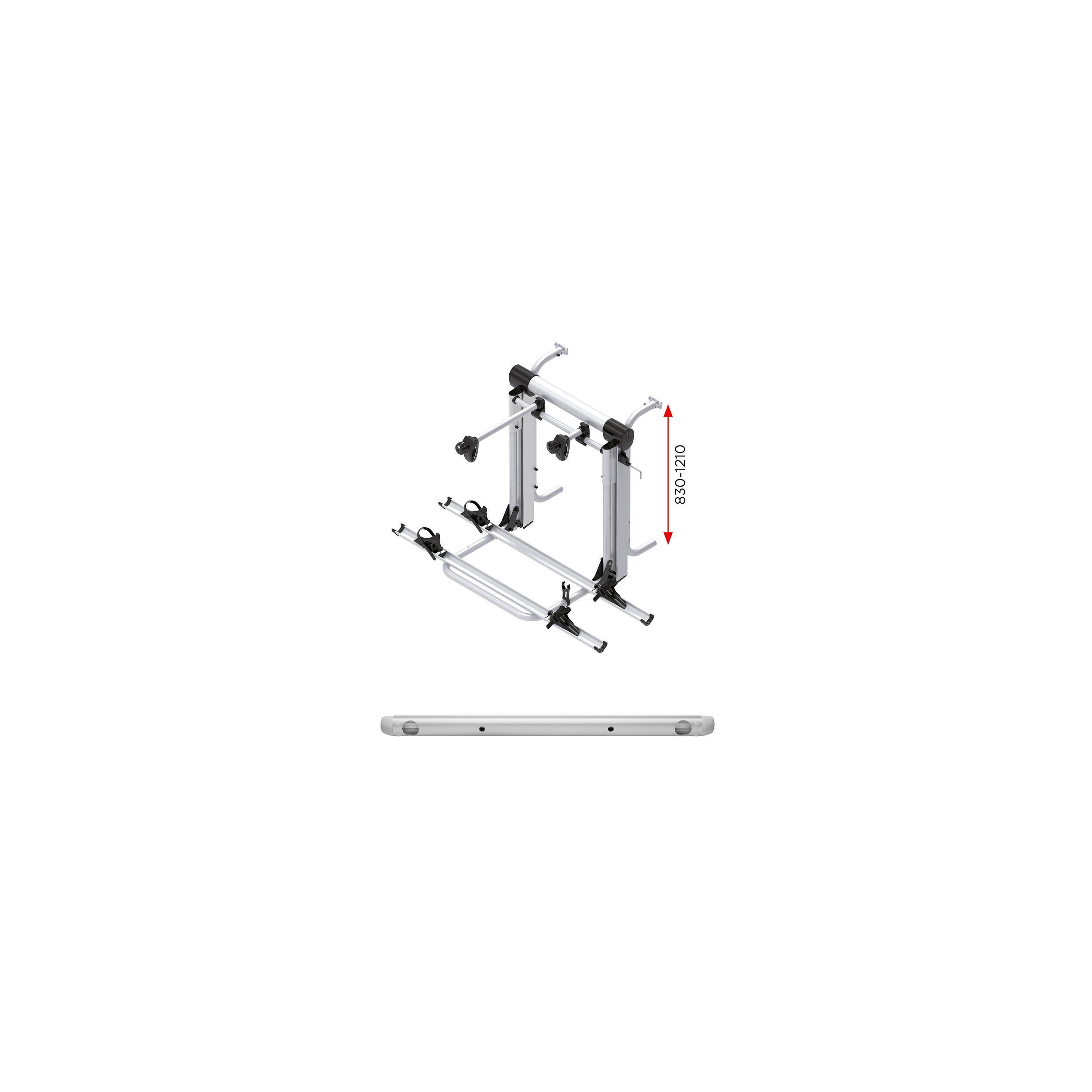 Pour les camping-cars pré-équipés de rails FIAMMA ou THULE.Avec entraxe vertical court réglable lorsque l'espace sur la paroi arrière est limité.