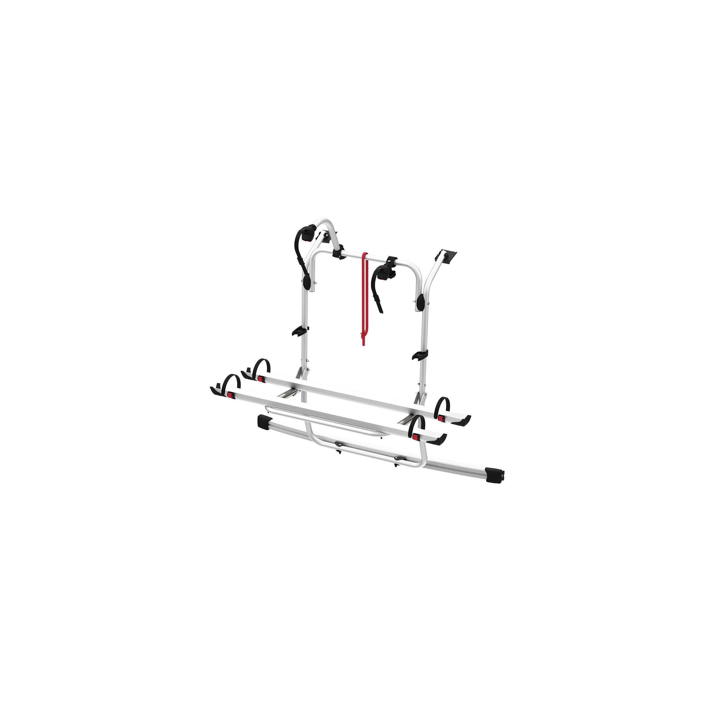 Le Carry-Bike permet de transporter 2 vélos (ou plus selon les modèles) avec un maintien optimal. Les vélos sont fixés à l’aide de rails en aluminium solides, de bras de maintien réglables et d’une sangle de sécurité Fiamma Security Strip fournie de série, pour une parfaite tenue sur route, même en cas de freinage brusque ou de virage serré.
