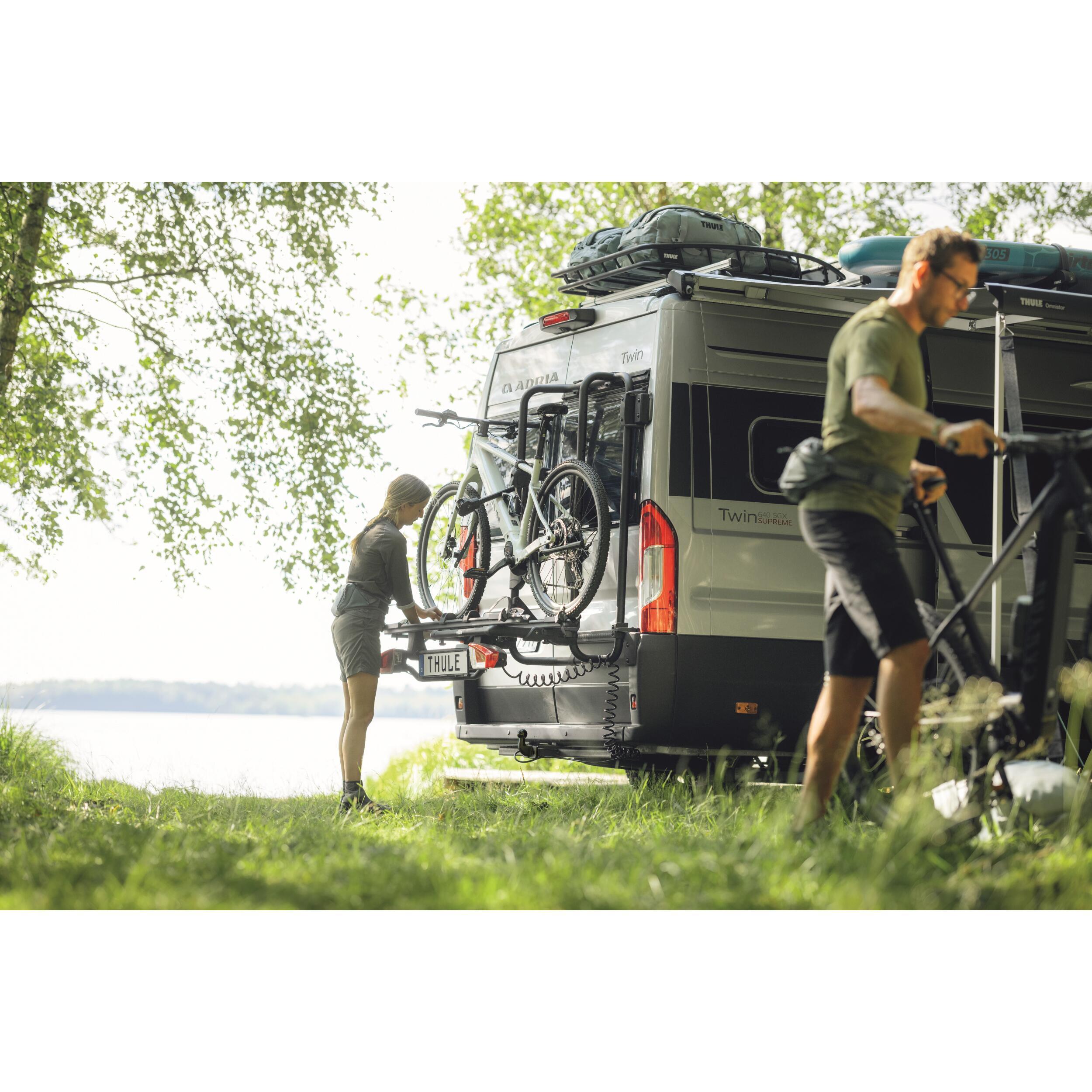 Le porte-vélos parfait pour van et fourgon : transport sécurisé de vélos électriques, accès au hayon maintenu et installation sans perçage.