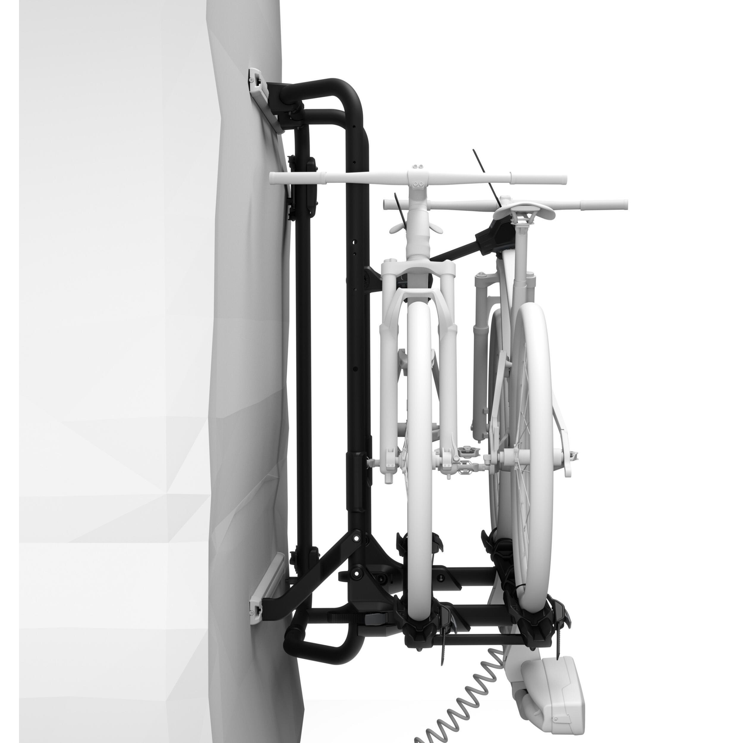 Fini les efforts pour hisser vos vélos : le VeloTrack peut être monté à trois hauteurs différentes, ce qui facilite grandement le chargement, en particulier avec des vélos lourds. Et si vous ajoutez la plaque lumineuse Thule Lightboard (vendue séparément), vous pouvez encore abaisser la plateforme pour plus de confort.