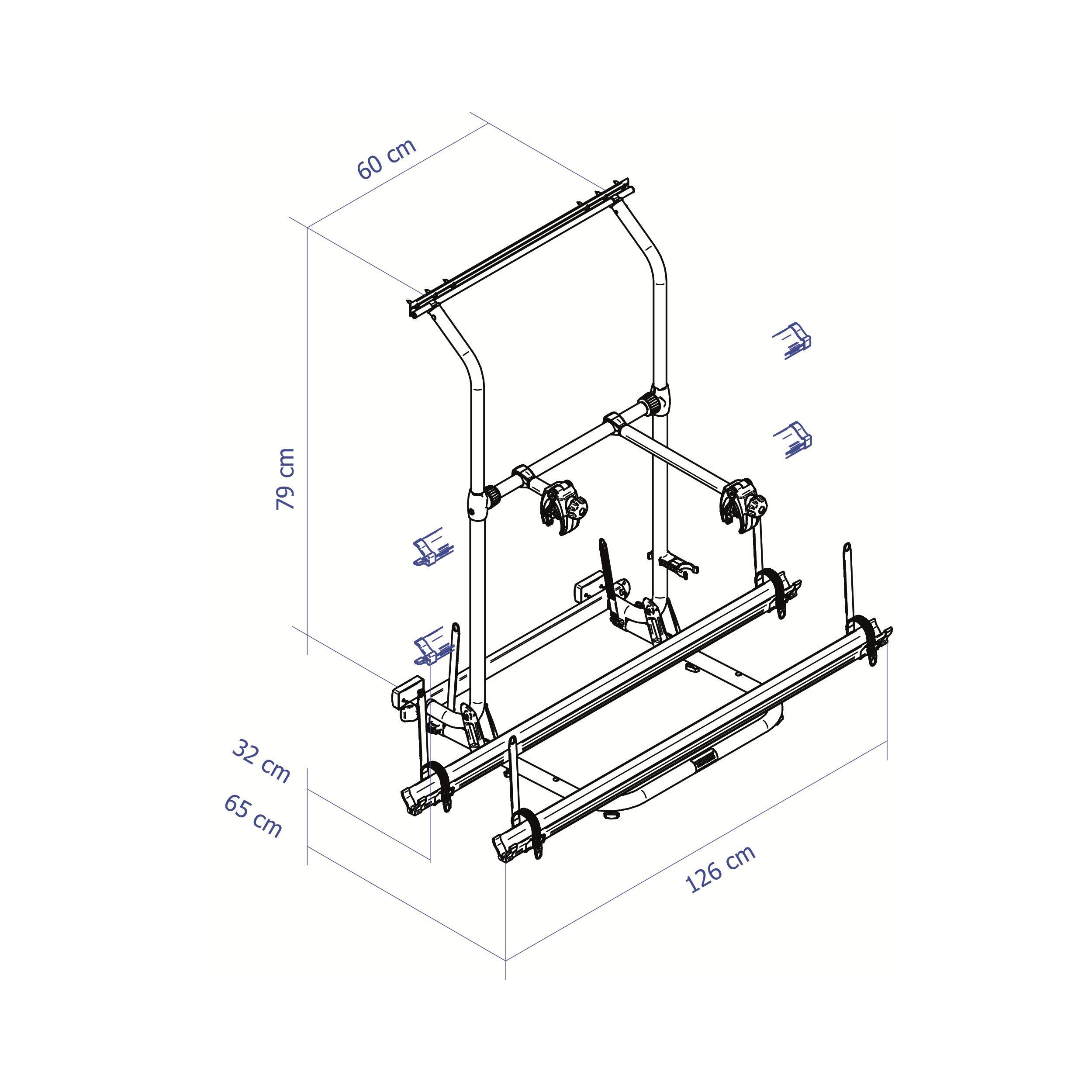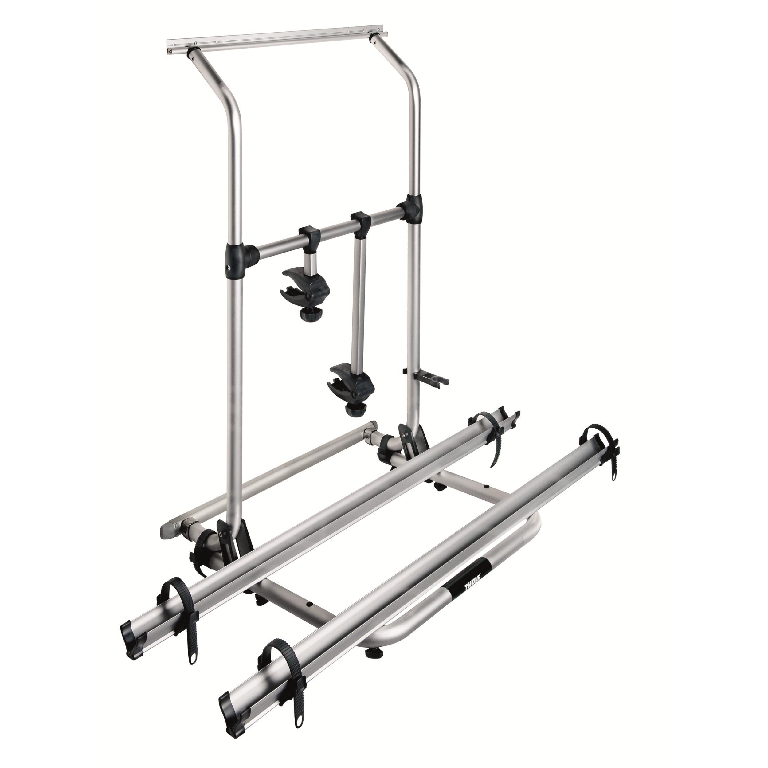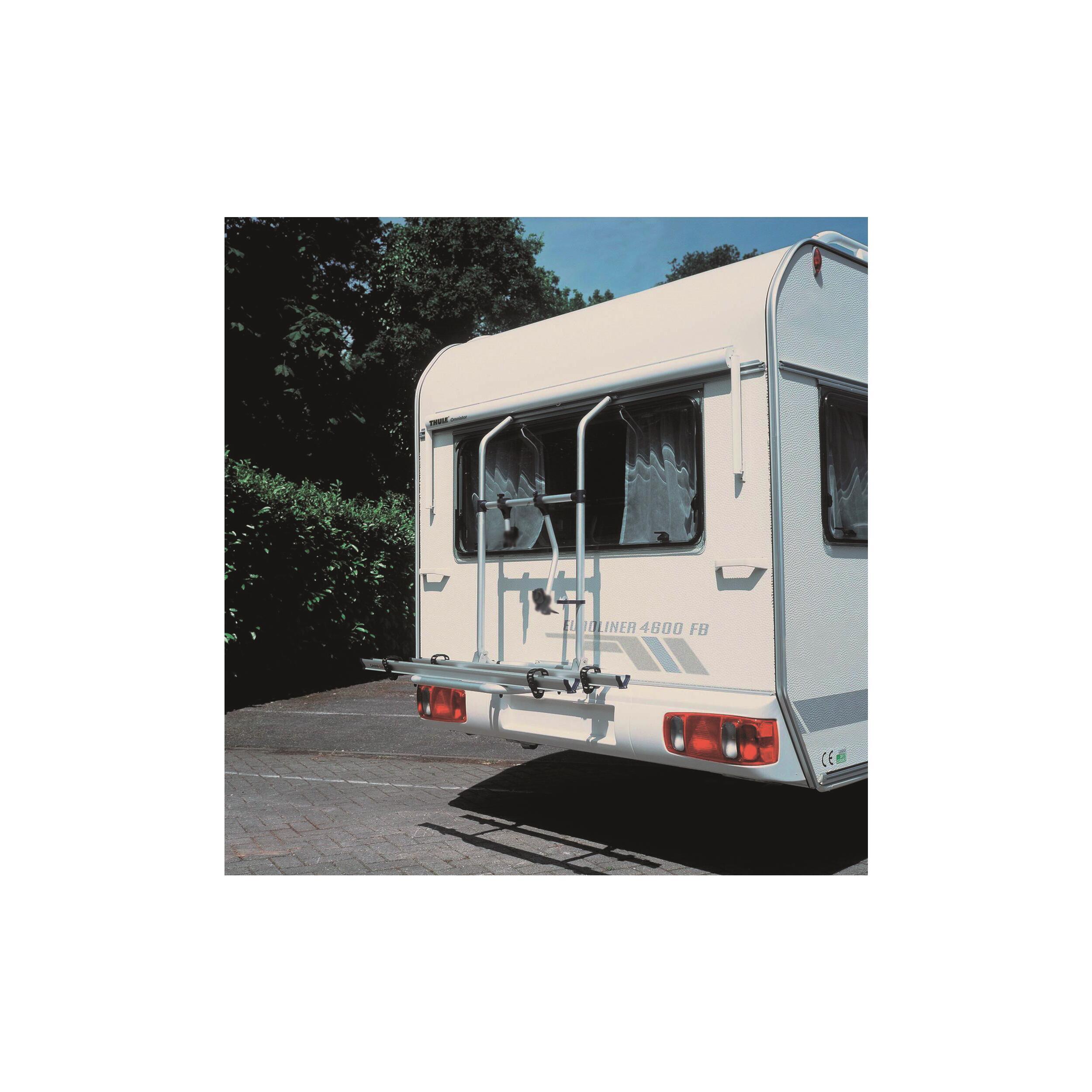 Porte 2 vélos spécifique pour caravane Hobby à partir de 2004 ou pour caravane équipée du store W150 Thule. Transformable en porte 3 vélos.