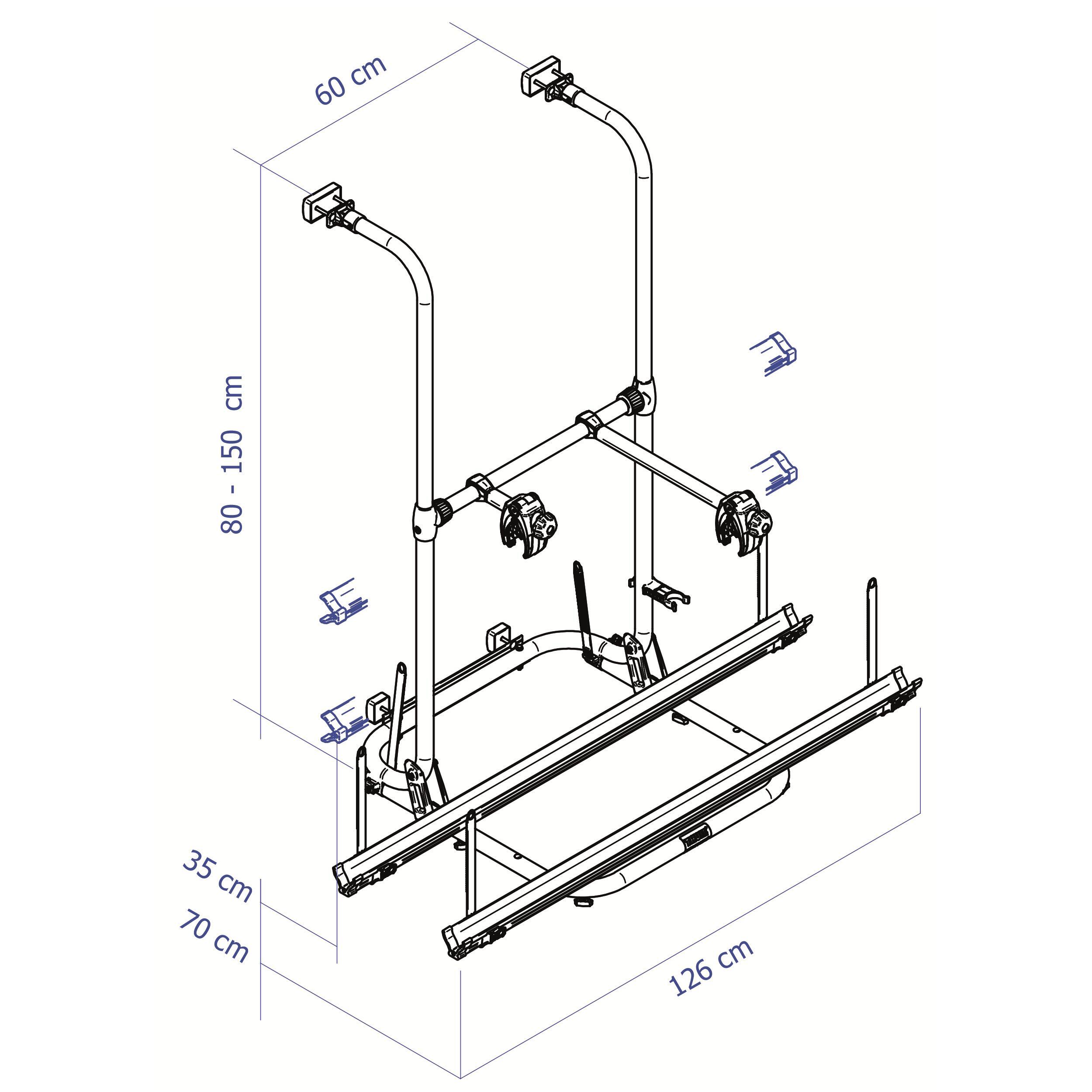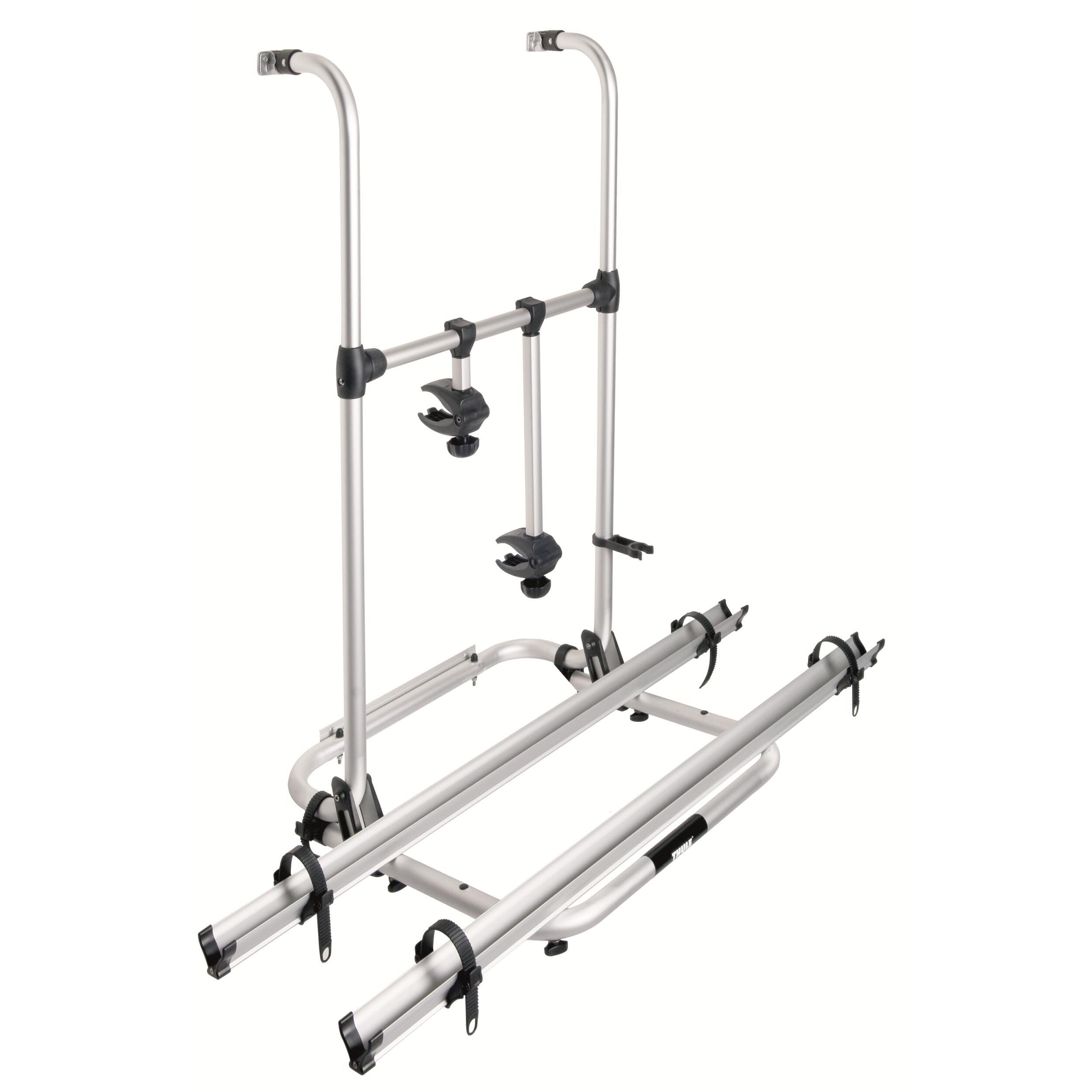 Porte 2 vélos pour montage sur paroi arrière galbée. Transformable en porte 3 vélos.
