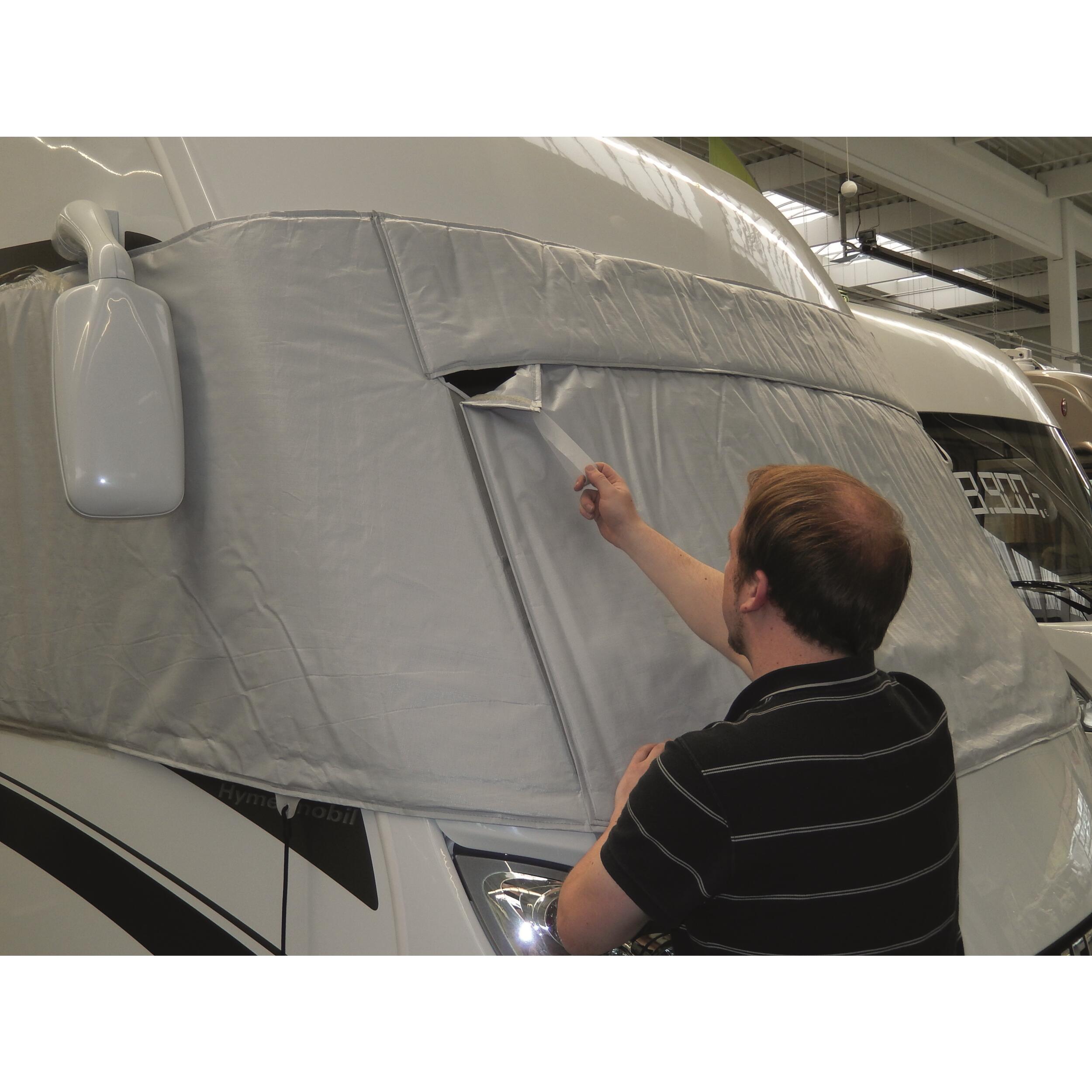 Ces matelas d'isolation se fixent à l'extérieur du véhicule. Ils isolent très bien du froid en hiver et protègent contre la chaleur en été en ne laissant pas les rayons du soleil toucher le pare-brise. Il évitent la formation de condensation sur la surface interne des vitres.