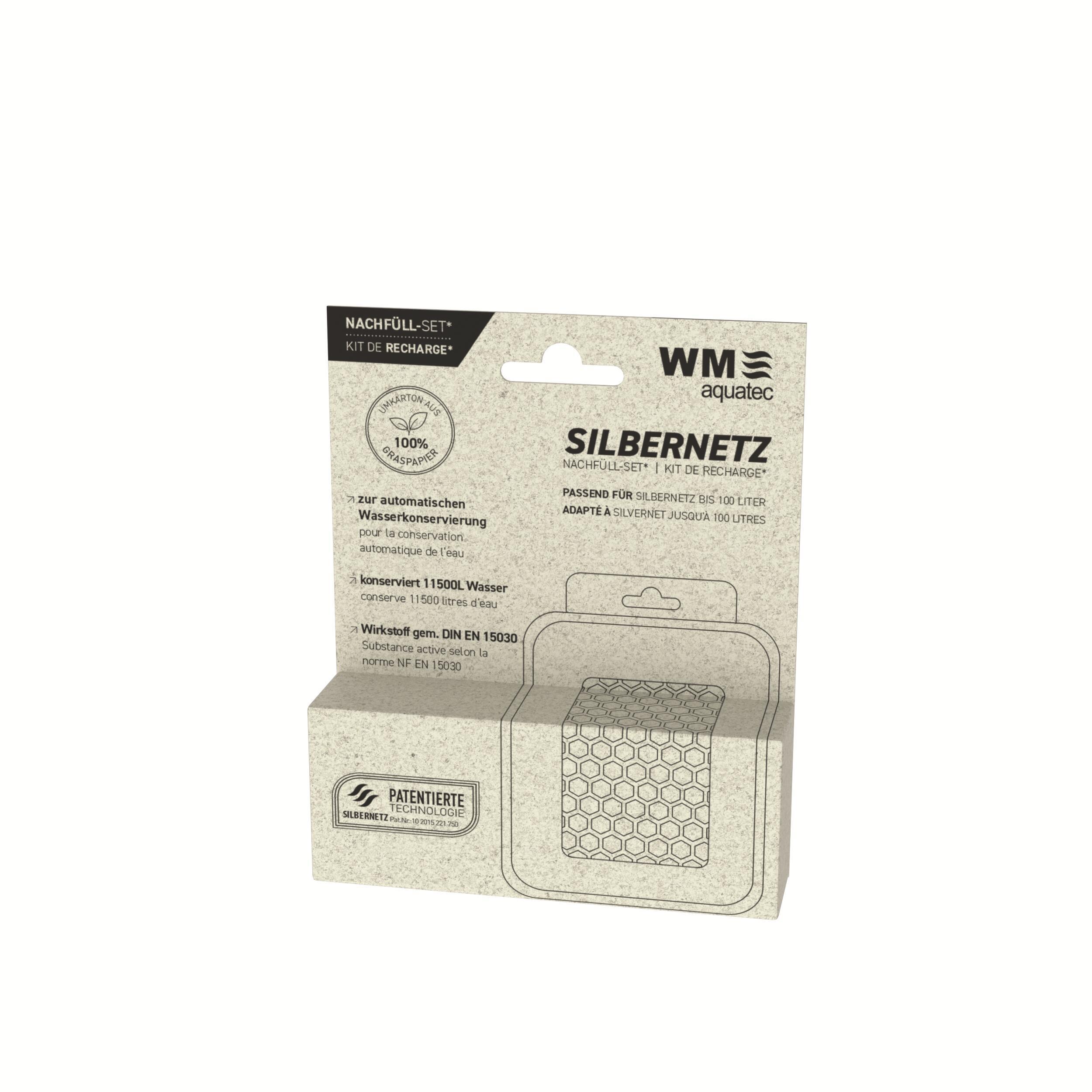 Set de recharge pour SilverNet jusqu’à 60, 100 et 160 litres. Réduit les déchets plastiques jusqu’à 50%. Substance active : ions d‘argent purs – sans additifs. Technologie brevetée.