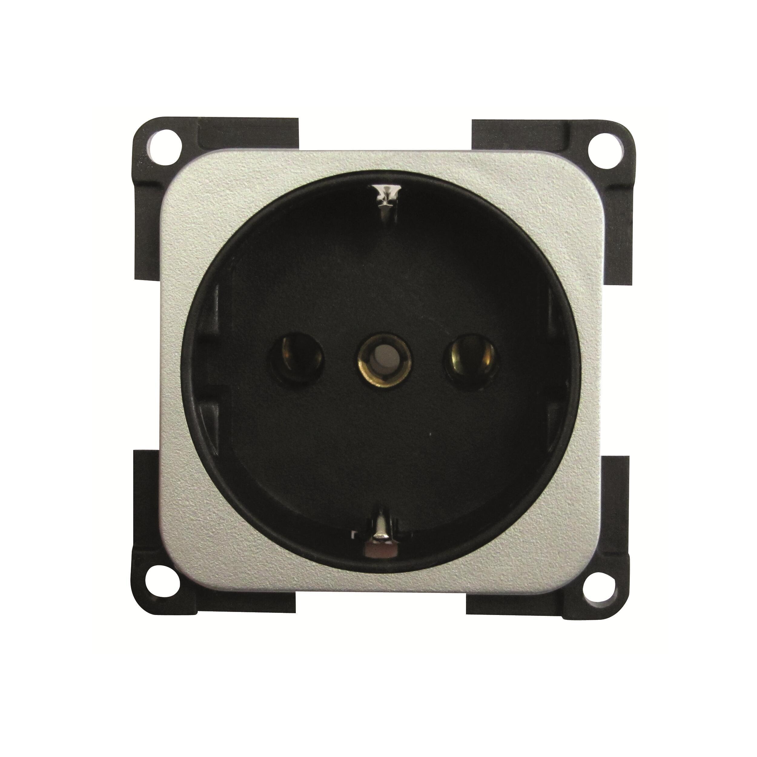 Description - Prise 220 Volts allemande Schuko : gris métal