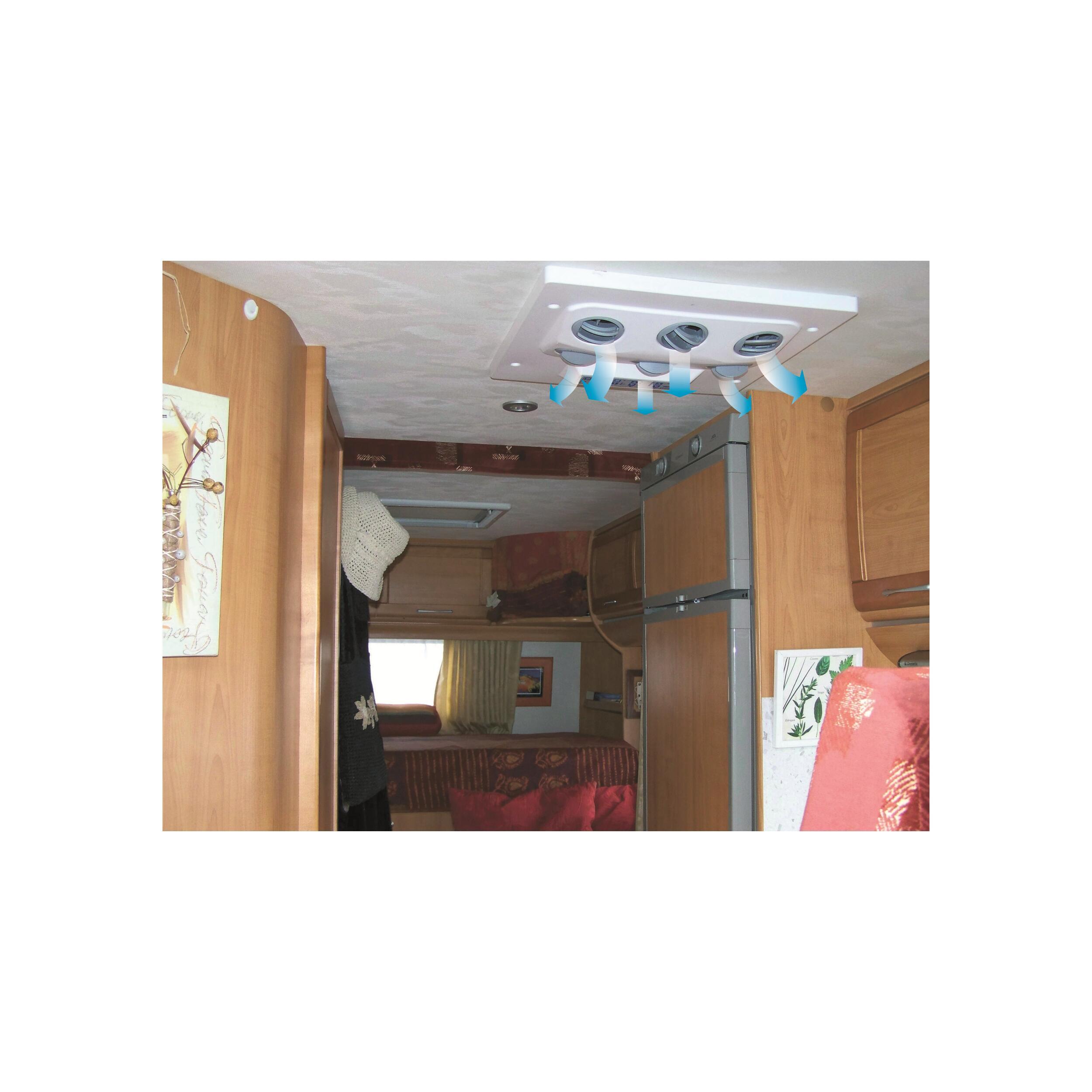 Fonctionnement silencieux à l'intérieur comme à l'extérieur. Diffuseur recouvrant en ABS équipé de 6 bouches réglables, orientables et obturables qui permet de masquer les éventuelles traces de dépose du lanterneau d'origine. Temporisation d'arrêt et départ différé réglables.