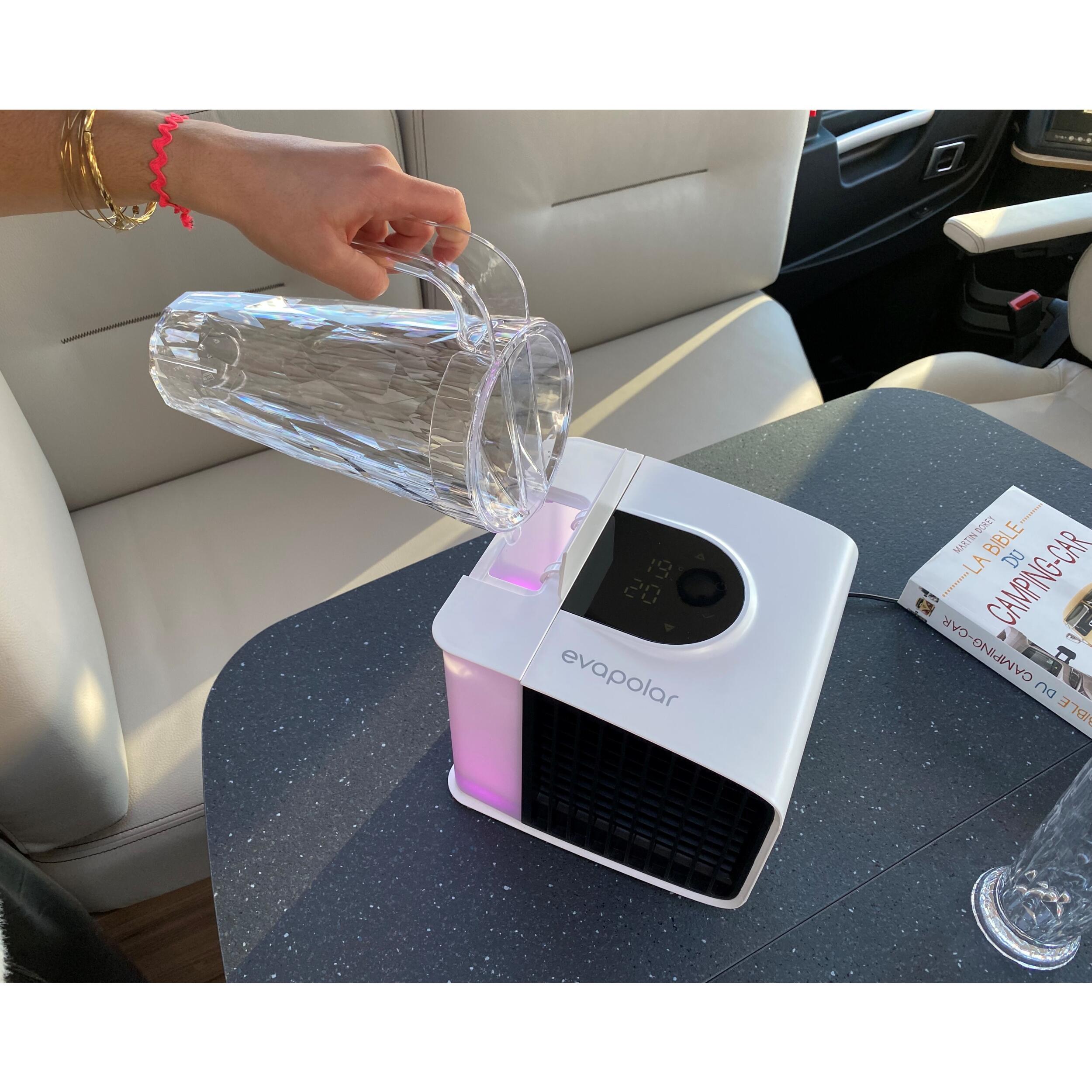 Léger et facile à transporter, le rafraîchisseur d’air Evapolar s’intègre parfaitement dans un camping-car, un van, un bureau ou une chambre. Son design minimaliste et sa faible consommation d’énergie en font un appareil idéal pour les nomades et les adeptes du télétravail. Alimenté en USB, il peut être branché sur une batterie externe, un ordinateur ou un adaptateur secteur, vous offrant une totale liberté d’utilisation.