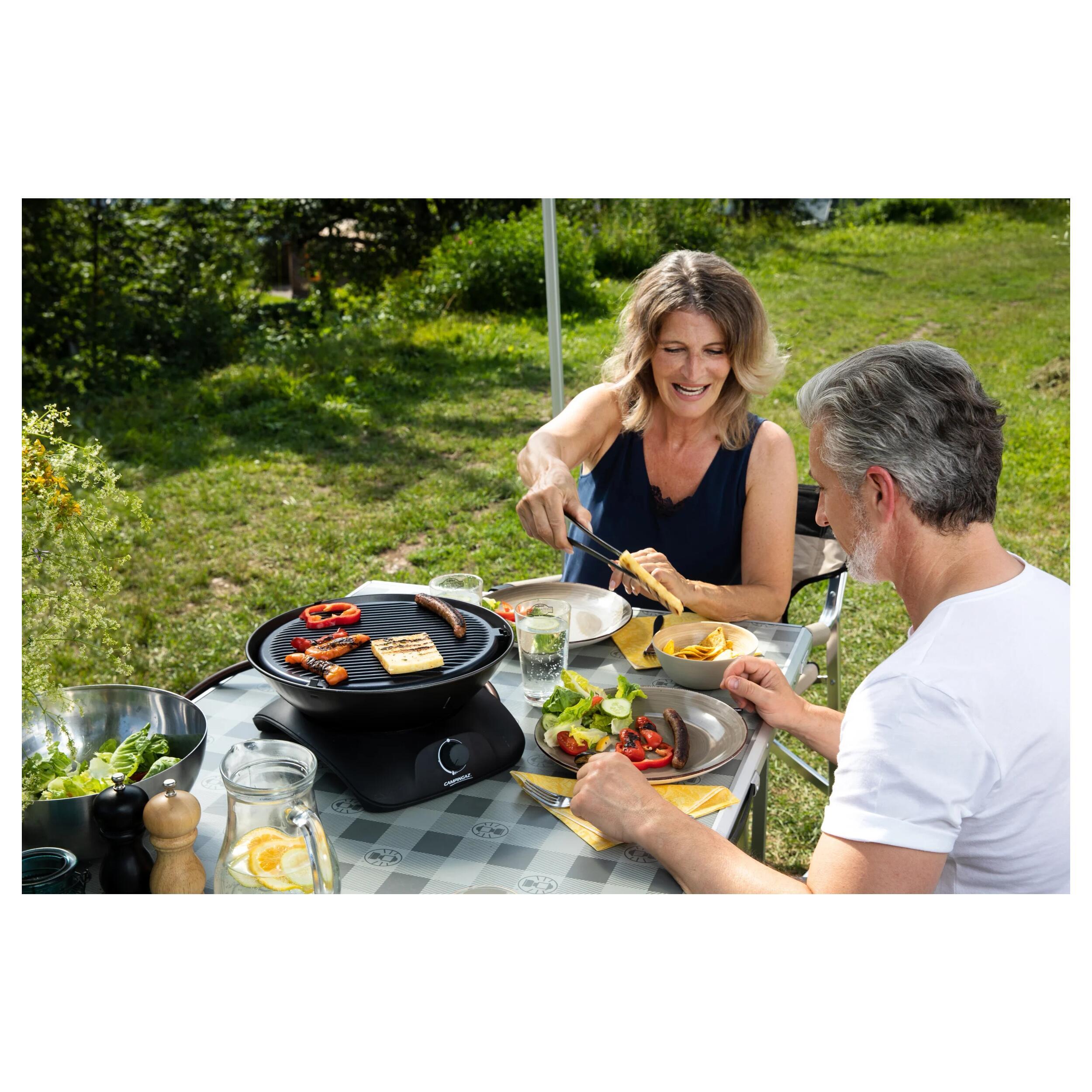 Le 360° Grill CV CAMPINGAZ est un barbecue à gaz à poser, parfait pour des repas conviviaux en extérieur. Fonctionnant sur cartouche de gaz Campingaz CV 470 Plus, il se place au centre de la table, permettant à chacun de cuire ses aliments à son rythme. Idéal pour le camping, les pique-niques ou les repas sur la terrasse, il allie praticité, performance et convivialité.