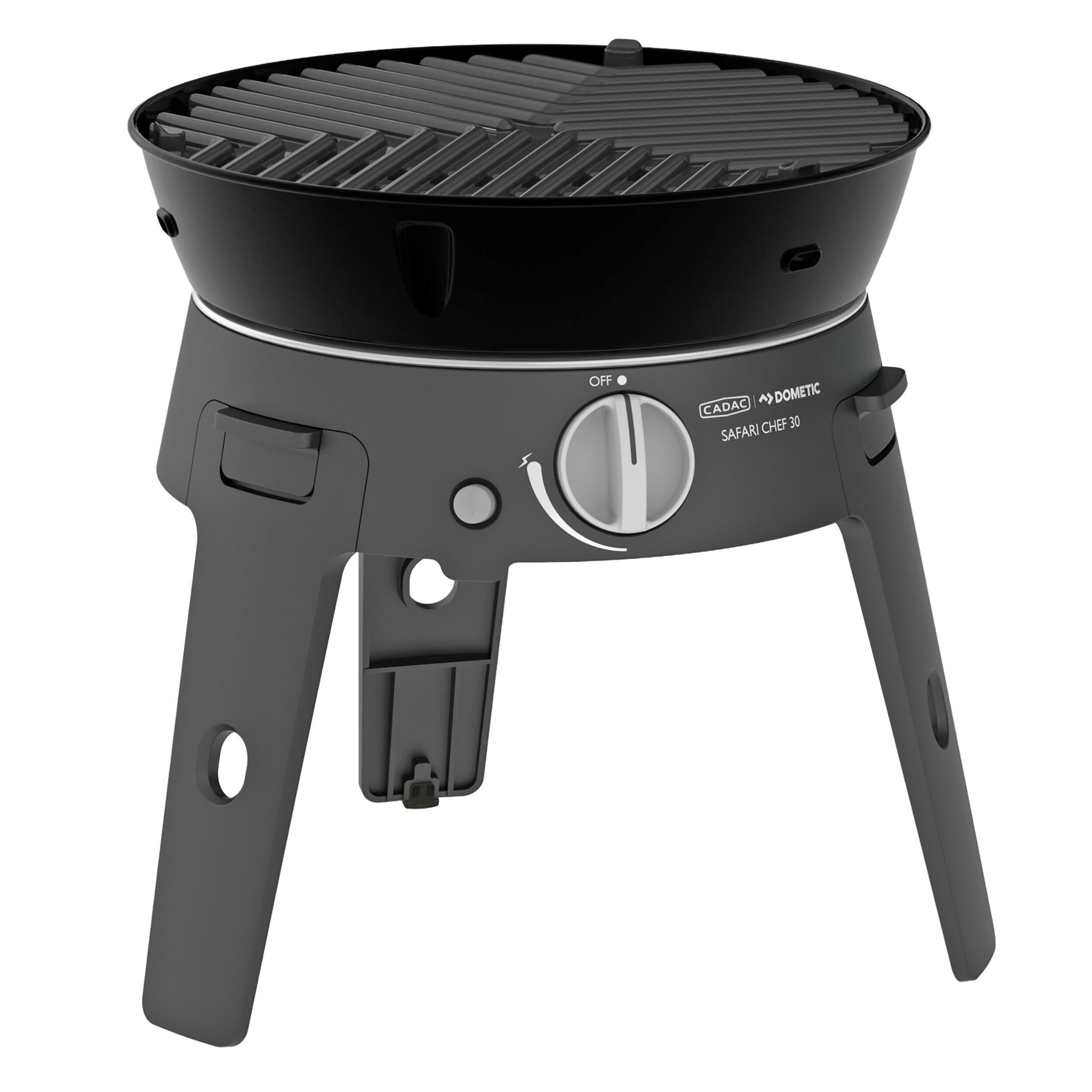 Découvrez le Safari Chef 30 Cadac, un barbecue à gaz portable, compact et pratique, offrant quatre surfaces de cuisson pour une cuisine variée, où que vous soyez.