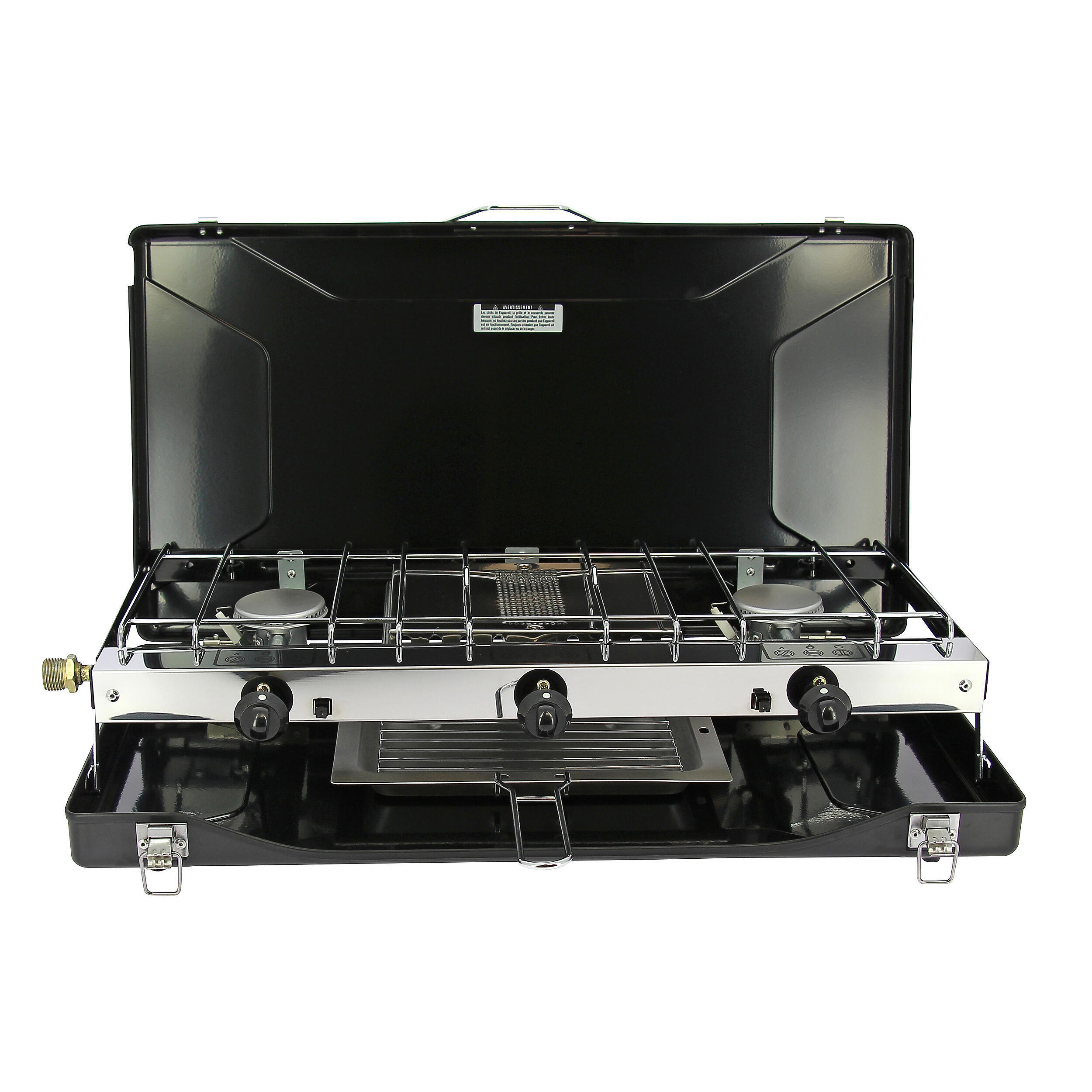 Conçu pour durer, le réchaud Incasa bénéficie d’un châssis en acier émaillé, facile à nettoyer et résistant aux chocs. Les deux brûleurs à gaz offrent une montée rapide en température, parfaite pour cuisiner en un rien de temps. Grâce au toaster intégré sous les feux, vous optimisez l’espace et la fonctionnalité de votre cuisine mobile. Son couvercle rabattable protège les feux pendant le transport et sert également de pare-vent une fois ouvert.