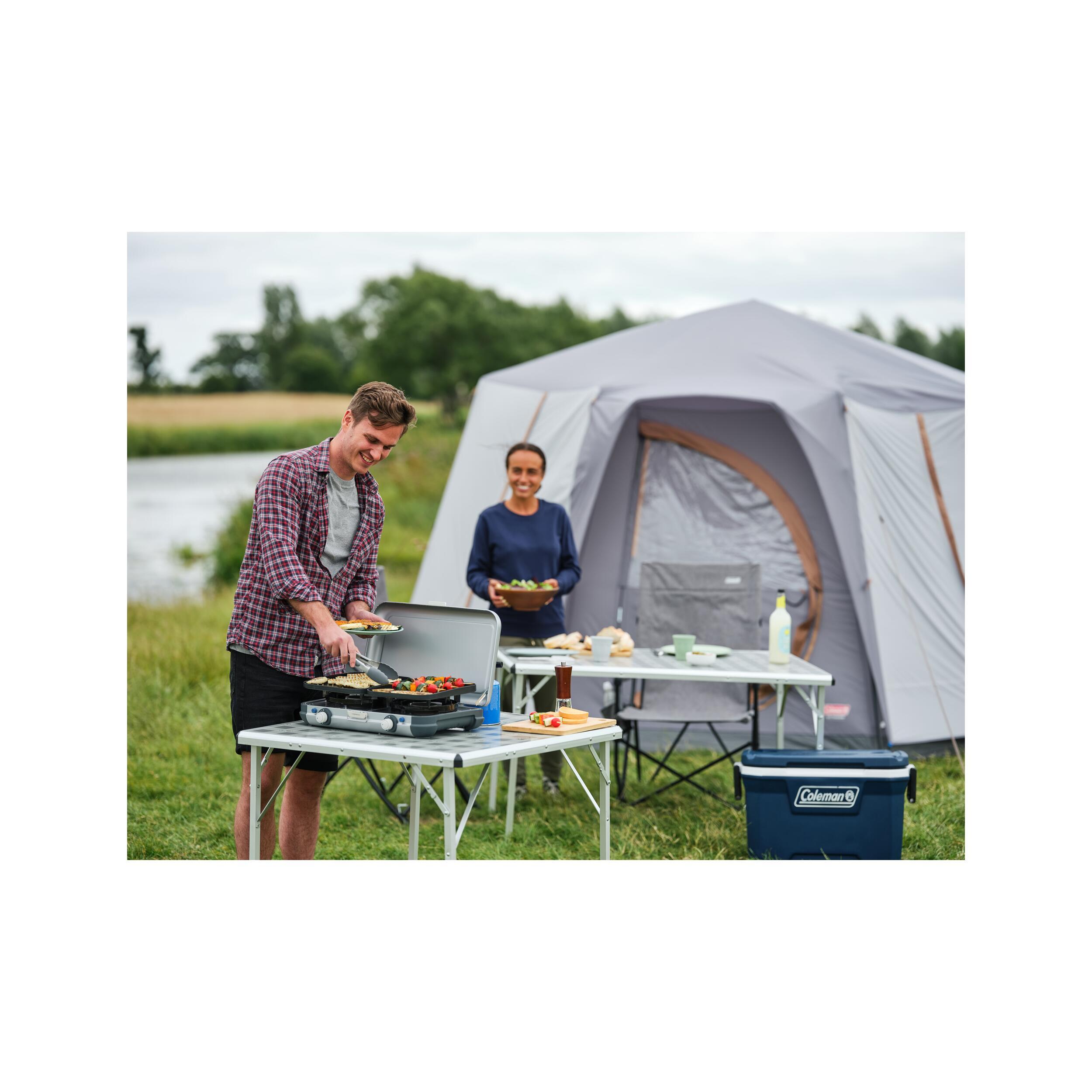 Le Camping Kitchen 2 Grill & Go R est un réchaud 2 feux polyvalent, avec grill, plancha et supports de casseroles interchangeables. Compact et transportable, il fonctionne sur bouteille de gaz.