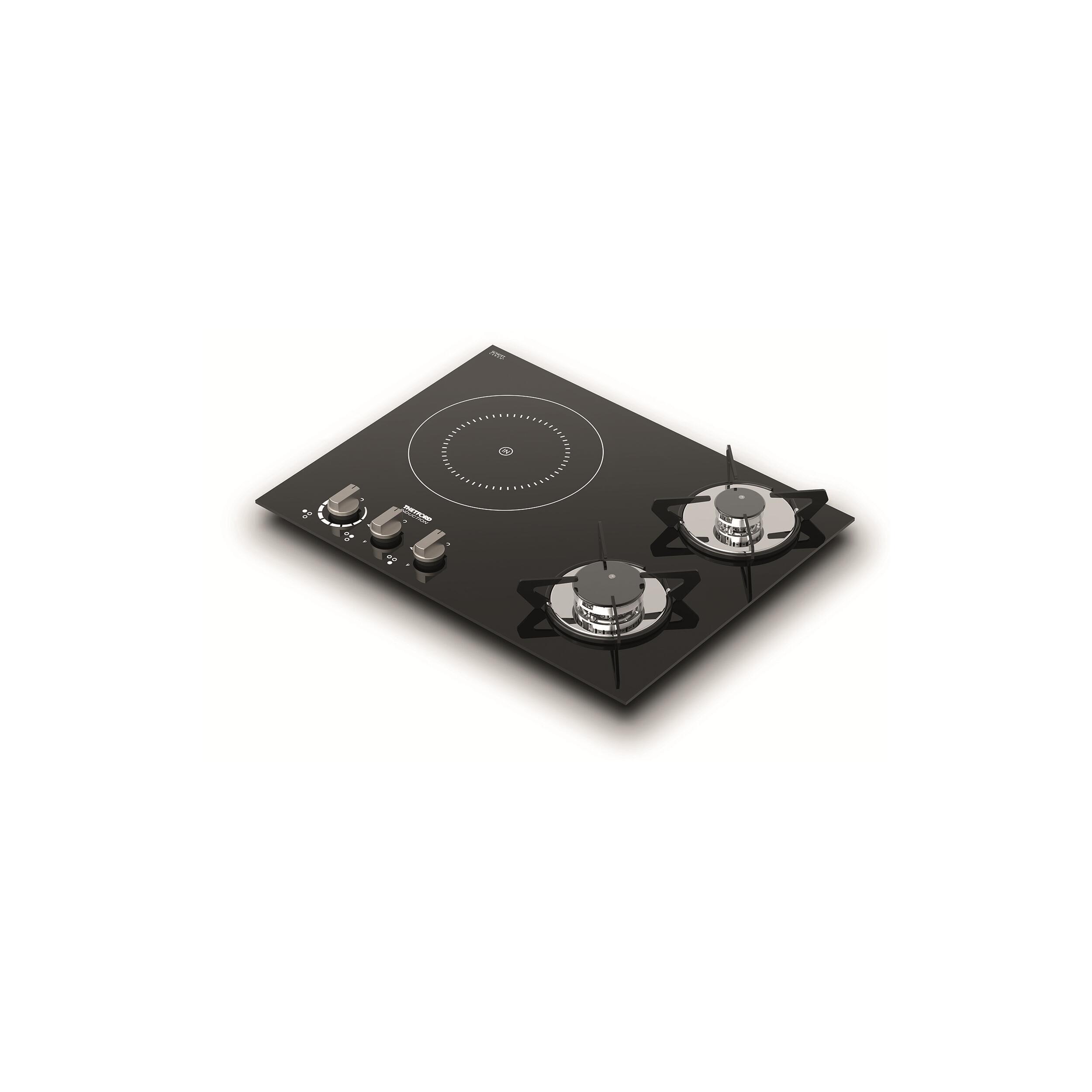 Plaque de cuisson réellement « hybride », combinant de façon unique une plaque au gaz et à induction particulièrement compacte, pour s'intégrer facilement à votre cuisine. Fabriquée à base de verre Schott Ceran haute qualité.