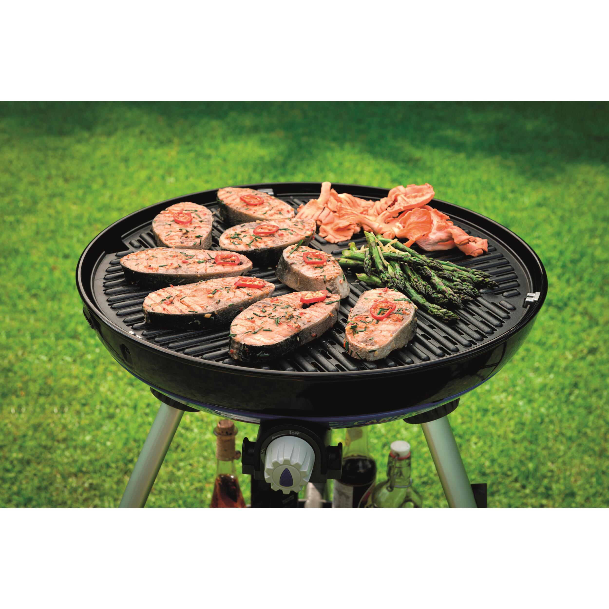 Découvrez le barbecue à gaz Carri Chef 50 de Cadac, un système de cuisson tout-en-un luxueux, idéal pour les grillades à domicile ou en vacances grâce à ses multiples surfaces de cuisson et sa portabilité.