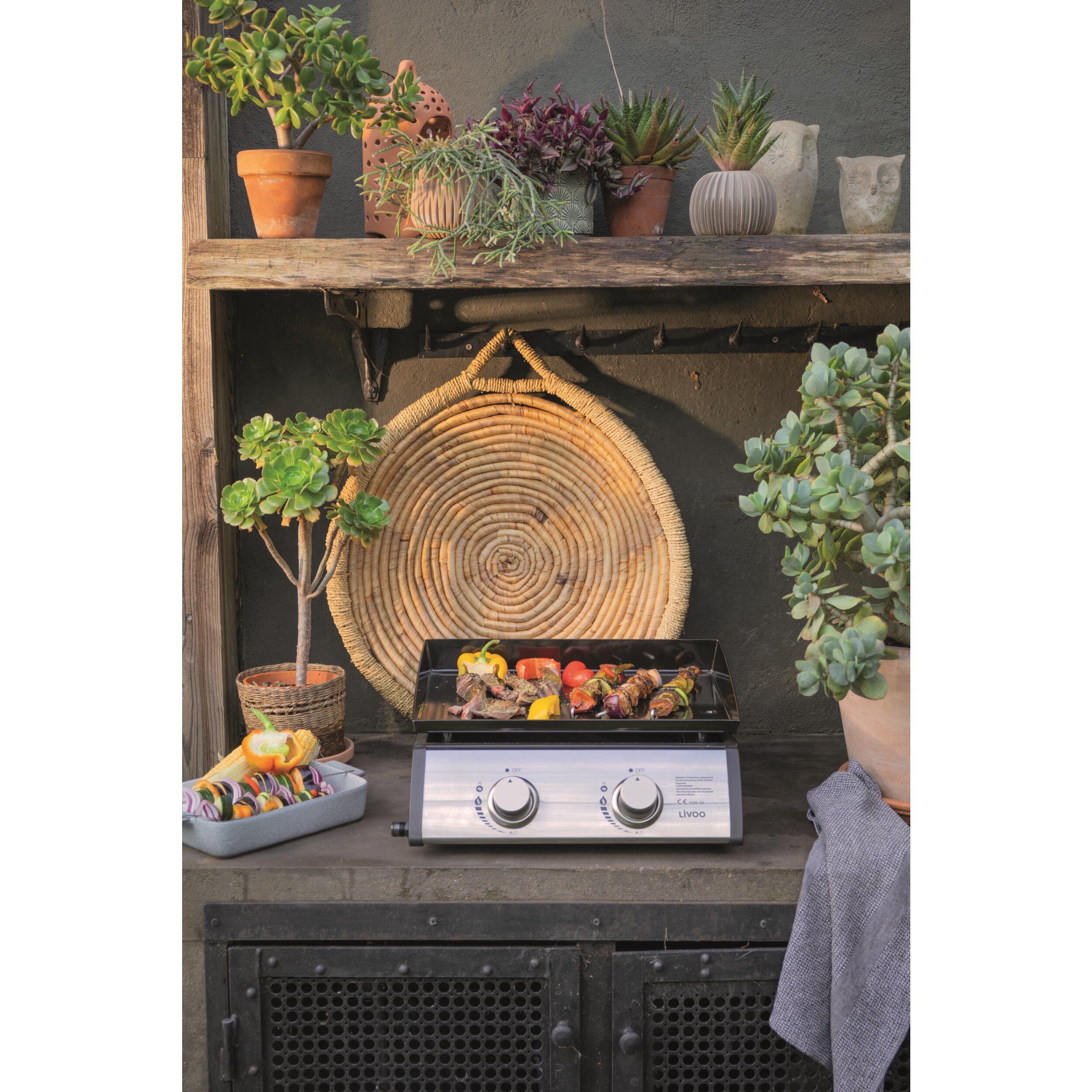 La plancha à gaz 2 brûleurs de la marque Livoo est conçue pour s'adapter à vos besoins de cuisson en plein air, tout en restant compacte et facile à transporter. Avec sa surface de cuisson généreuse de 48 x 36 cm, elle est idéale pour préparer des repas pour 4 à 6 personnes, rendant vos réunions entre amis ou en famille encore plus agréables.