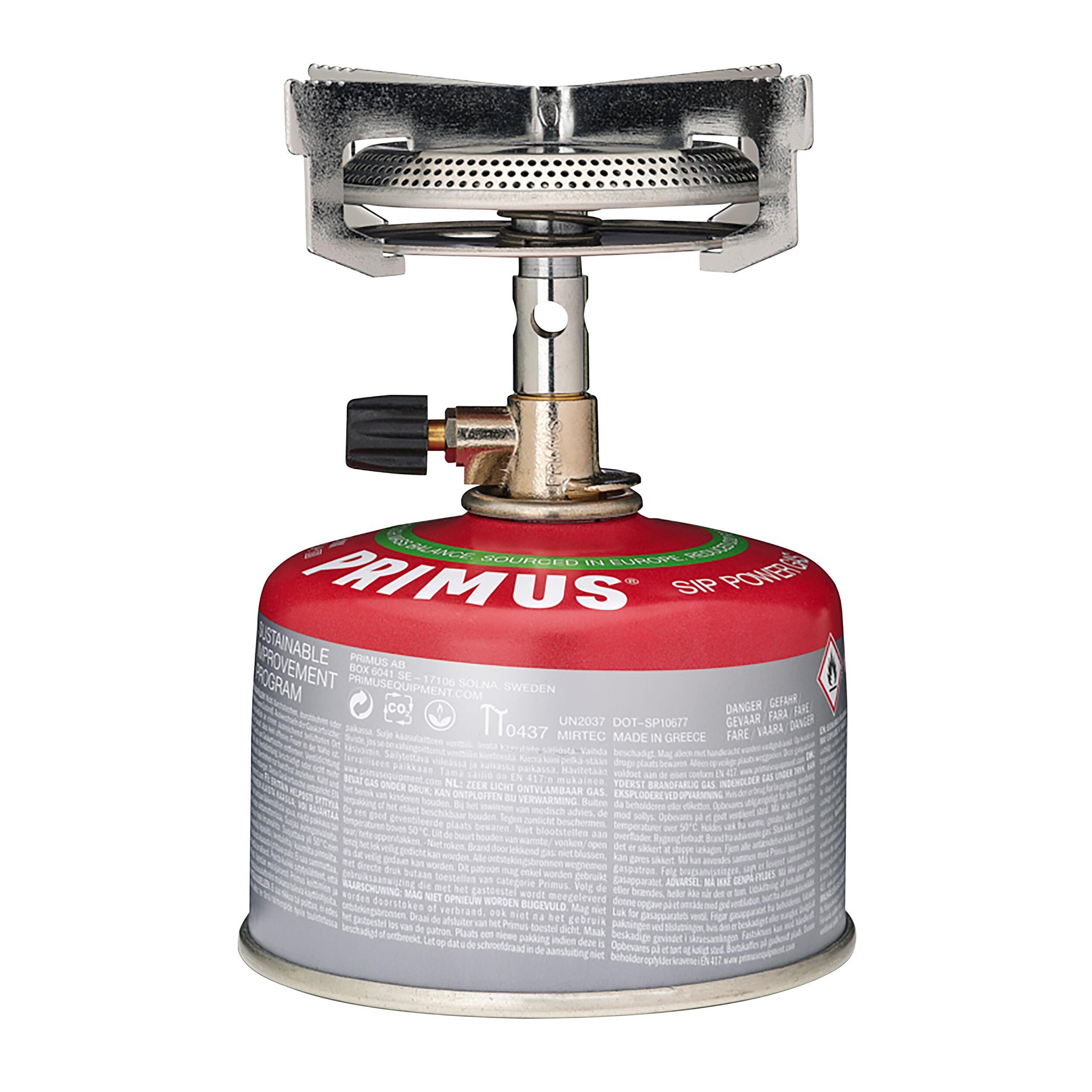 Le Mimer Stove de Primus est un réchaud à gaz simple et robuste, idéal pour le camping et les activités en plein air, compatible avec de grandes casseroles.