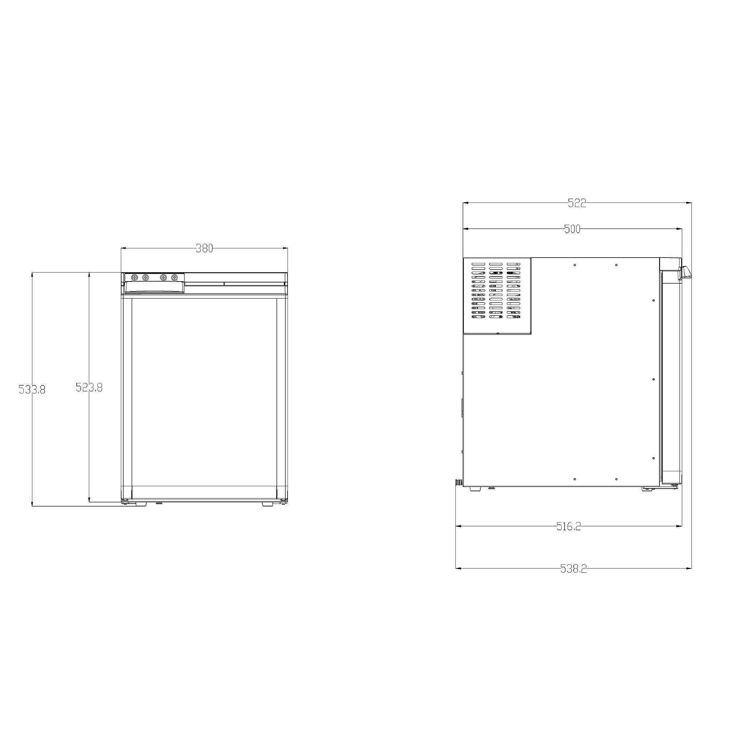 Les modèles F40, F50, F65 et F80 disposent d’un bac à légumes, d’un freezer, de clayettes réglables, de bacs amovibles et d’une lumière intérieure. Le modèle F80 se distingue par une double porte. Chaque modèle intègre un système de verrouillage de porte. Chacun des modèles est équipé avec le gaz réfrigérant R600a, un gaz écologique avec un PRP inférieur à 3.