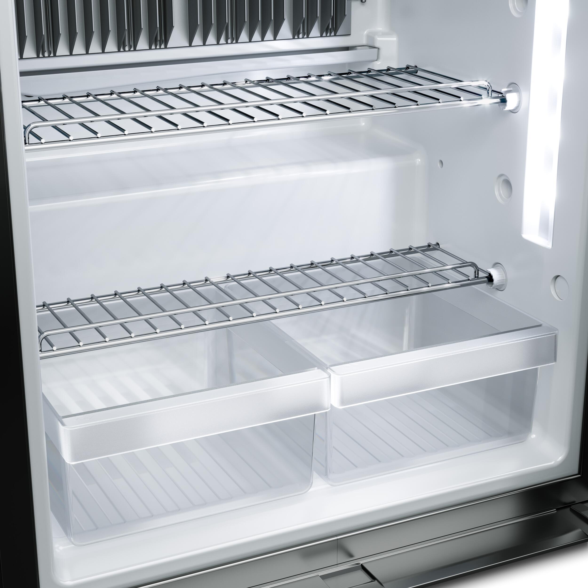 Les frigos à absorption Série 10 intègrent un compartiment de congélation breveté amovible, vous laissant le choix d’optimiser l’espace selon vos besoins : congeler, ou bénéficier d’un volume de réfrigération supplémentaire. Les modèles RMD 10.5T et RMD 10.5XT, quant à eux, disposent de deux portes distinctes séparant réfrigérateur et congélateur pour plus de clarté. Le bac à légumes VG Fresh avec humidité réglable permet de conserver fruits et légumes plus longtemps, un atout essentiel pour les longs séjours en autonomie.