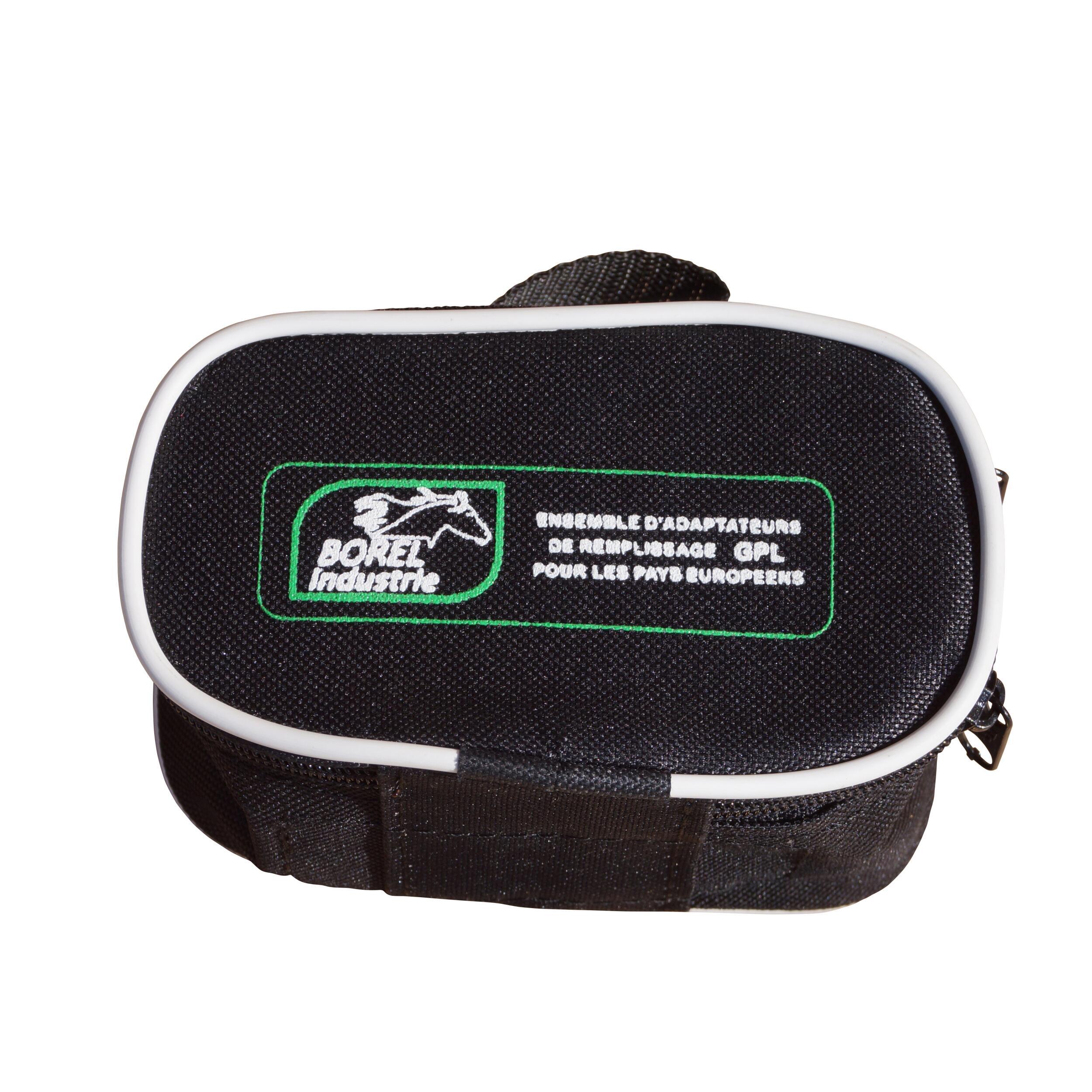Prévu pour pouvoir effectuer le plein dans le pays européen dans lequel vous séjournez. Comprend un raccord type Europe (compatible Espagne), un raccord type ACME (compatible Autriche, Allemagne, Belgique, Irlande et Suisse) et un raccord type Baïonnette (compatible Danemark, Grande-Bretagne, Norvège, Pays-Bas et Suisse).