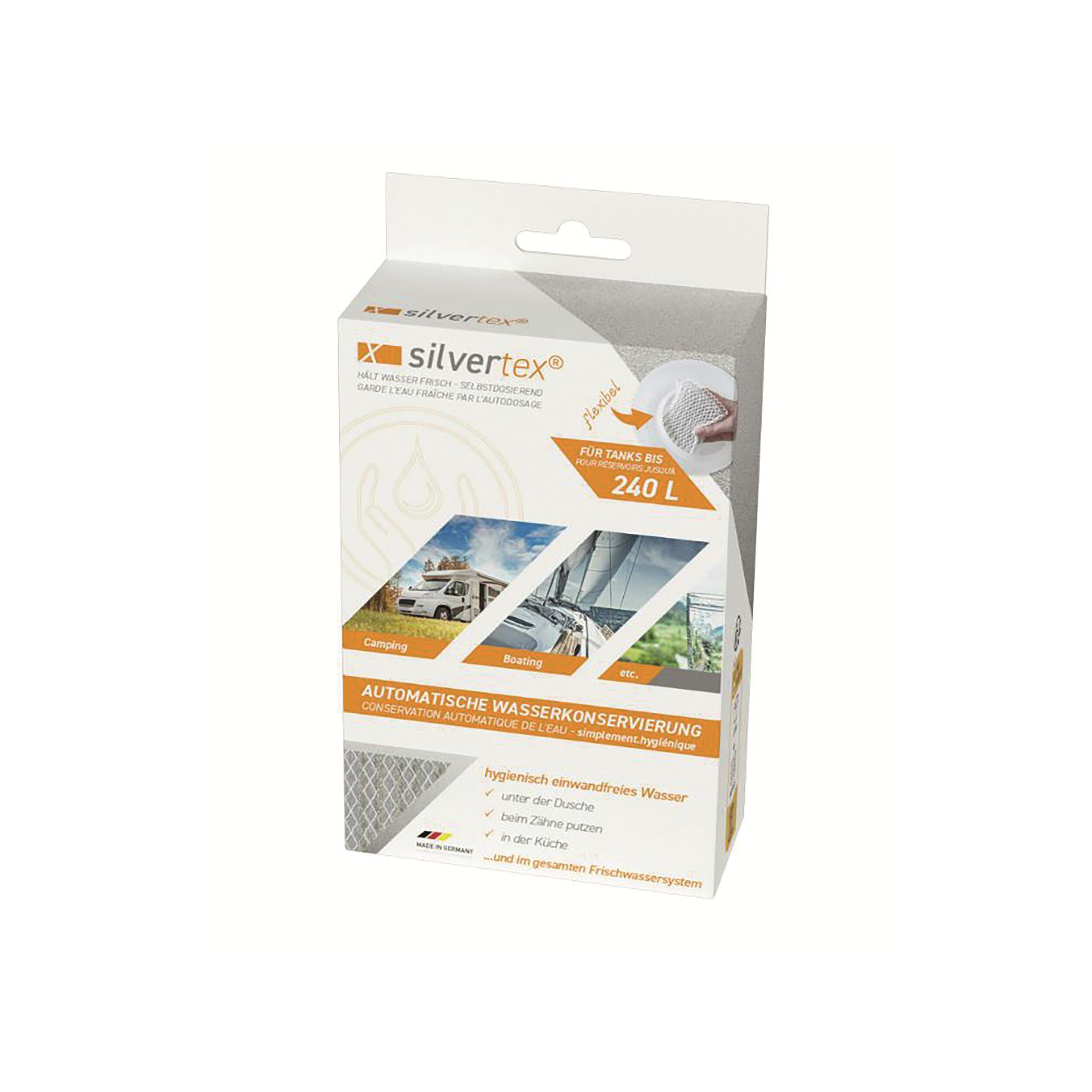 Silvertex d'Aquatec : une solution innovante pour une eau pure et sans bactéries dans votre camping-car. Facile à utiliser, il protège efficacement votre réservoir d’eau contre les contaminations.