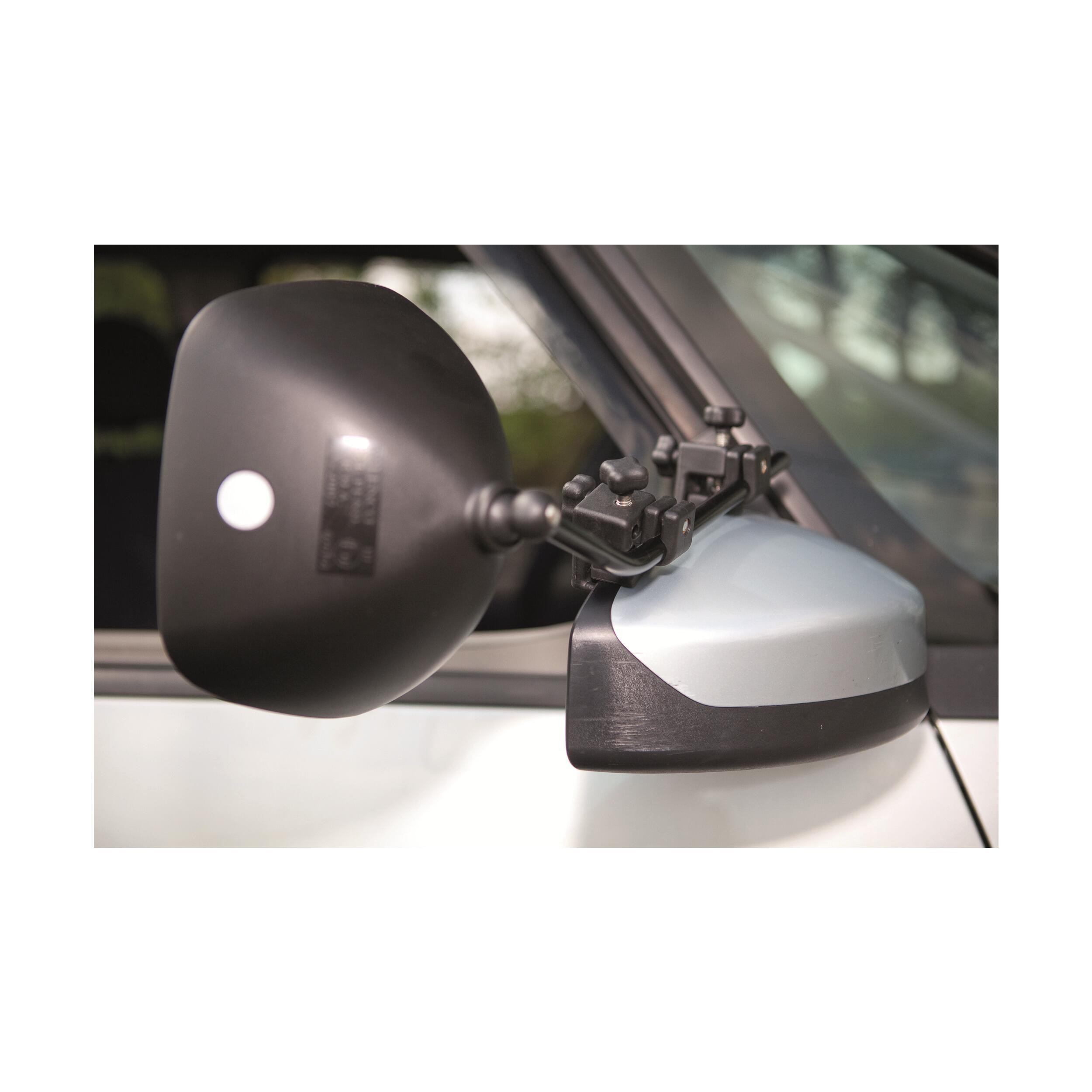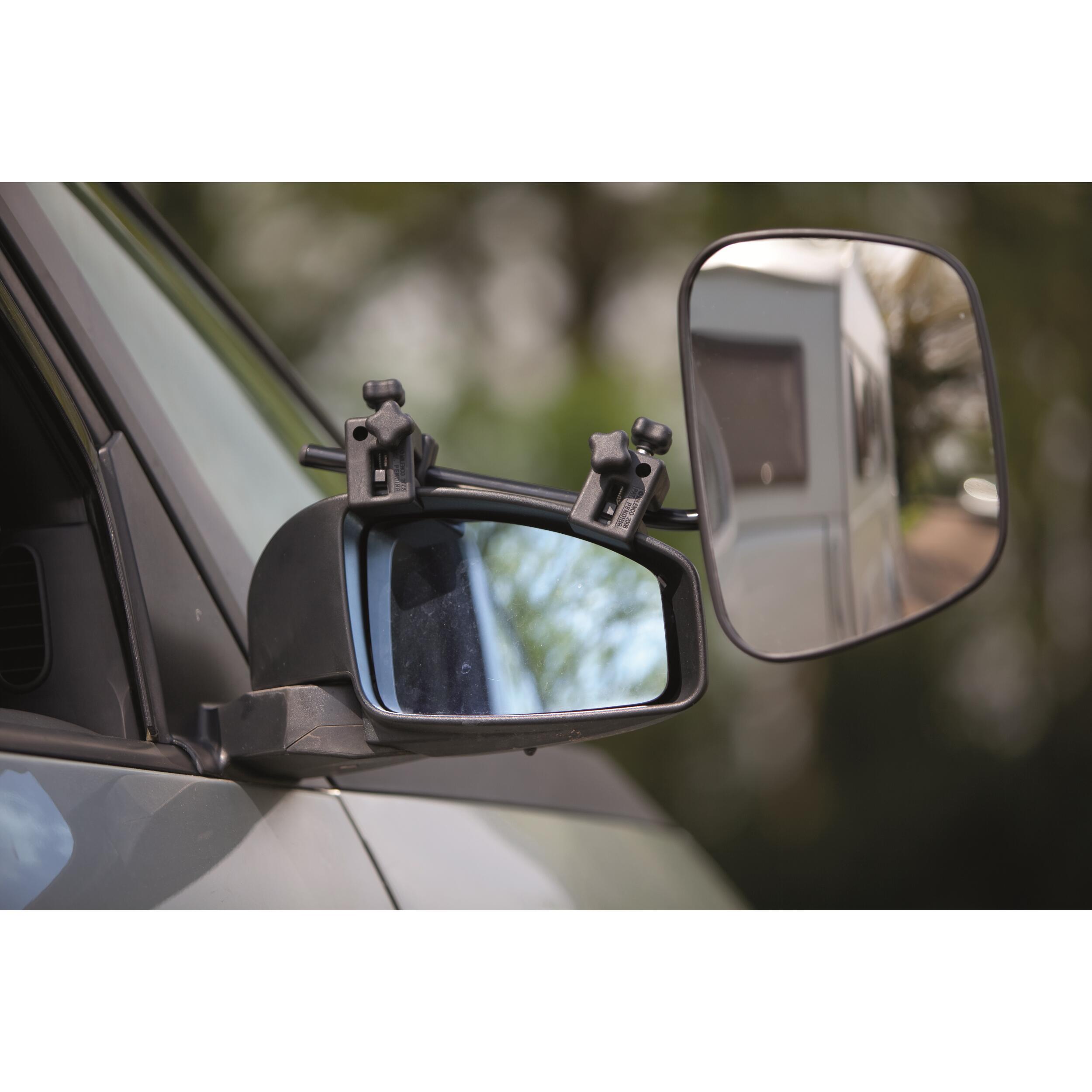 Verres convexes grand format permettant de voir le toit et la roue de la caravane d'un seul coup d'oeil.