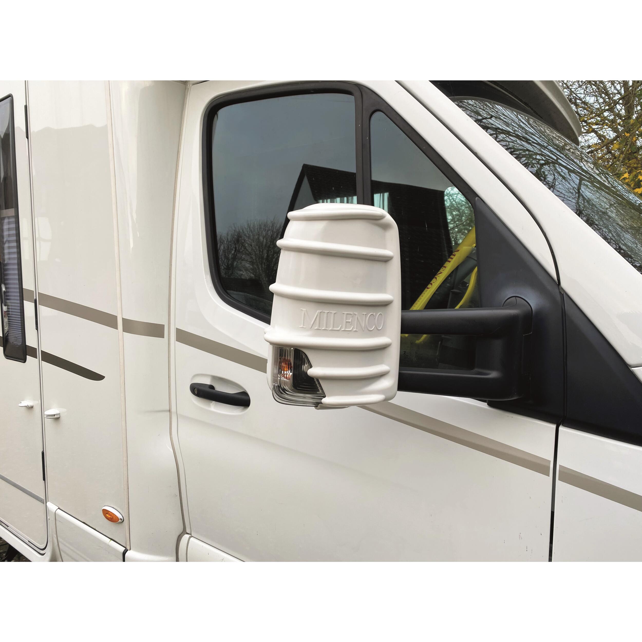 Les coques de rétroviseurs Milenco viennent s'appliquer sur le rétroviseur d'origine sans collage ni perçage. Par l'épaisseur de leur plastique et leur système de fixation unique, elles apportent une protection supplémentaire en cas de choc, renforcent un rétroviseurs endommagé et améliorent l'esthétique.