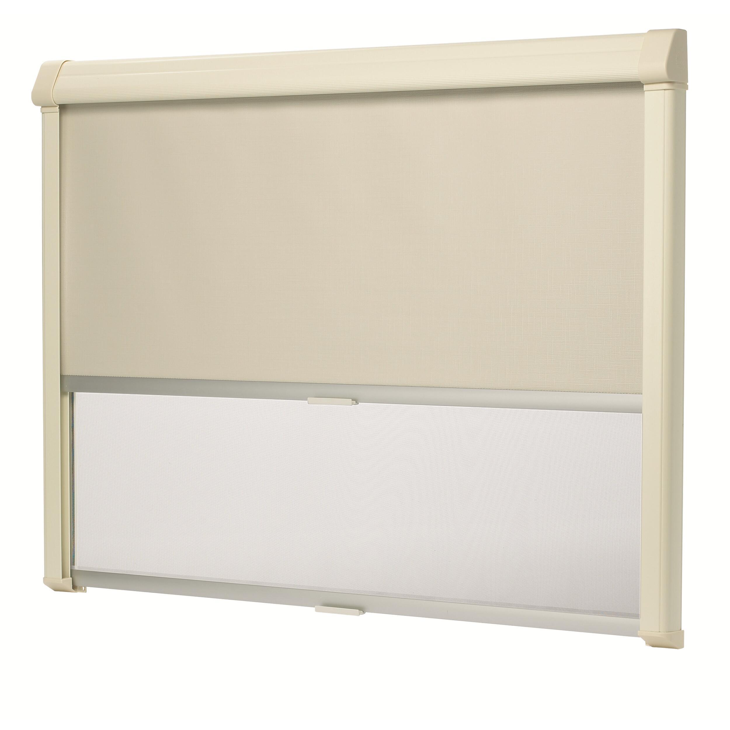 Ce store est la solution idéale pour les fenêtres sans cadre, il est conçu pour être installé au-dessus du bord supérieur de la découpe de la fenêtre. Protection très efficace contre les insectes. Toile extérieure du store en aluminium à forte puissance thermo réfléchissante. Toile intérieure blanche. Moustiquaire et store d'occultation intégrés et manœuvrable en différentes positions.