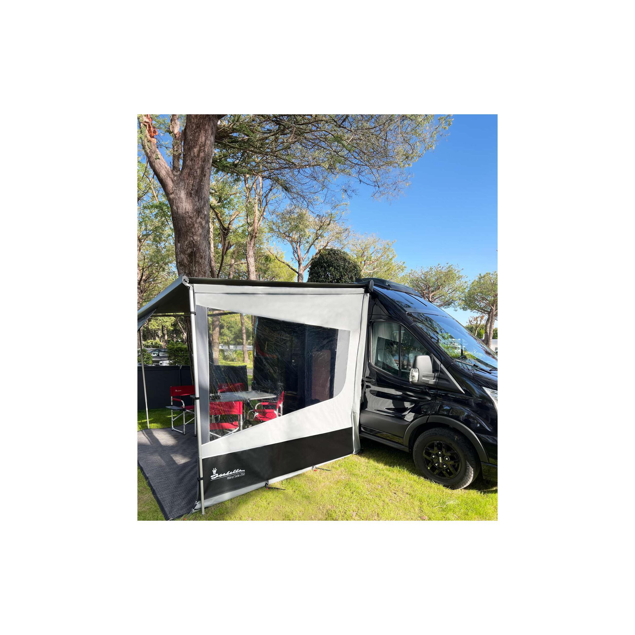 Créez un espace extérieur confortable devant votre camping-car, fourgon ou caravane avec le Wind Side, facile à fixer à votre store pour offrir abri et confort supplémentaires.