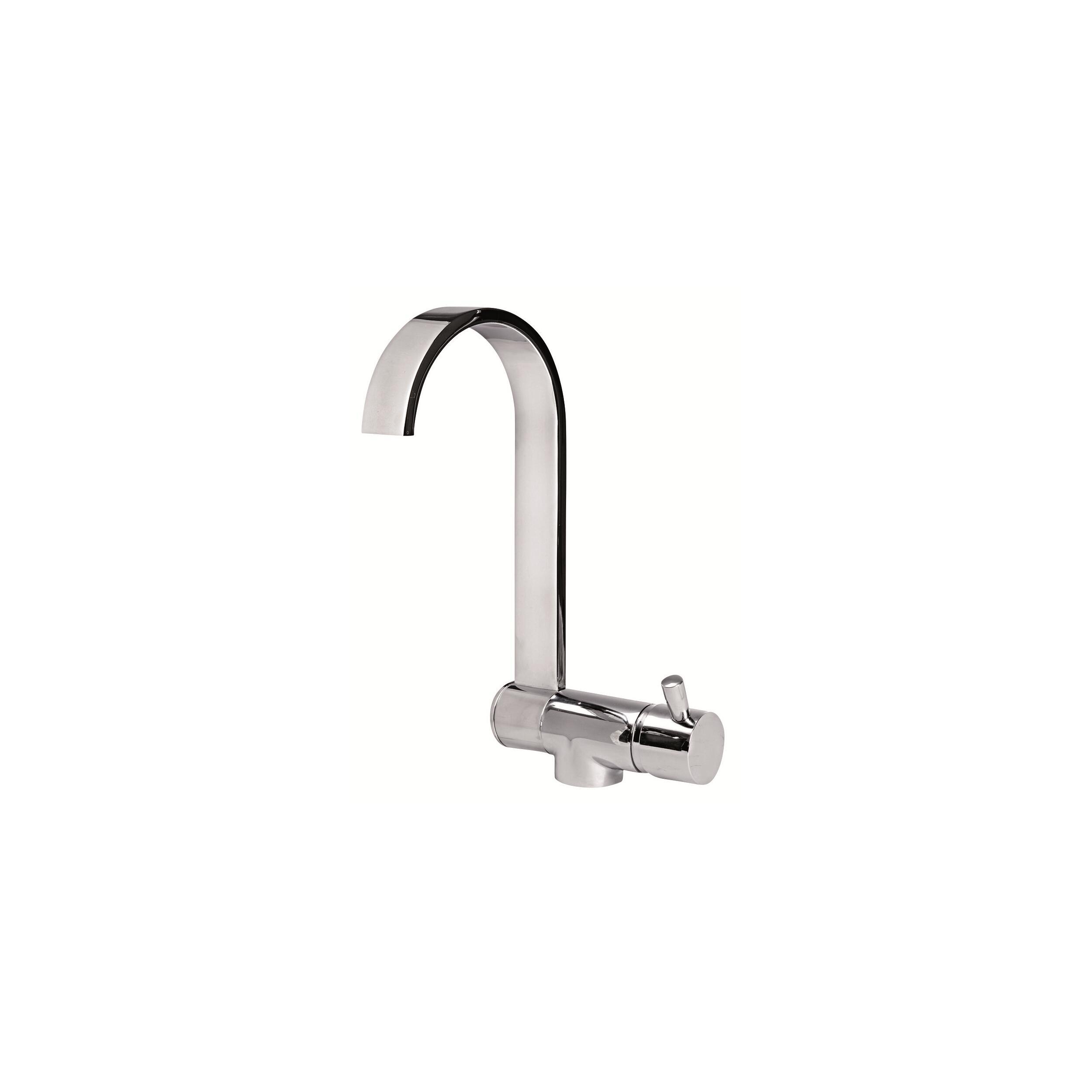Mélangeur eau chaude / froide, avec bec rabattable. Compatible avec pompe automatique et tuyaux flexibles. Si vous utilisez une pompe immergée, n'oubliez pas le contacteur automatique réf : 018433/018434. Kit de fixation et flexibles fournis.