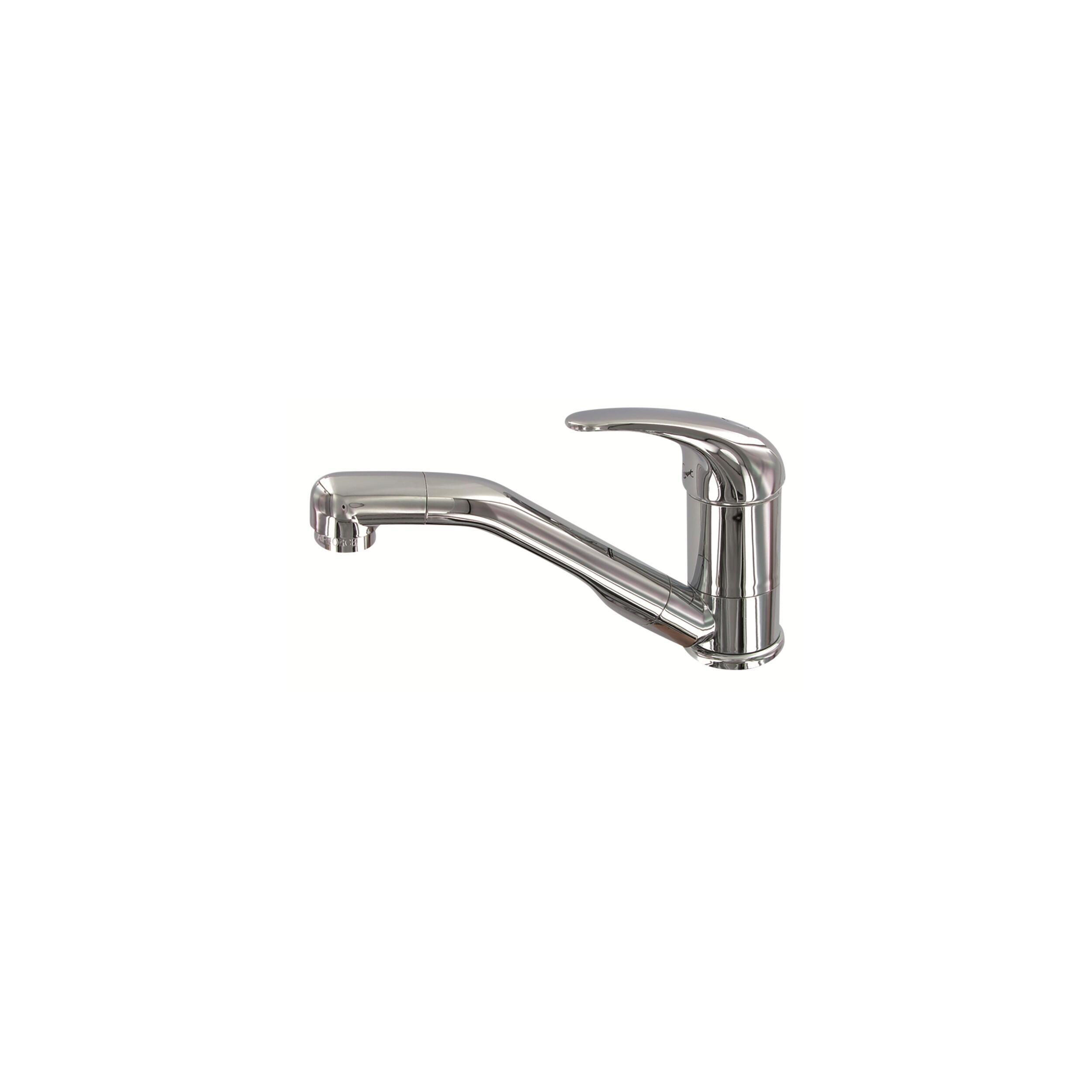 Dégagement amélioré grâce au bec coudé à 40°. Mitigeur eau chaude / eau froide avec bec orientable, contacteur 12V et cartouche céramique.