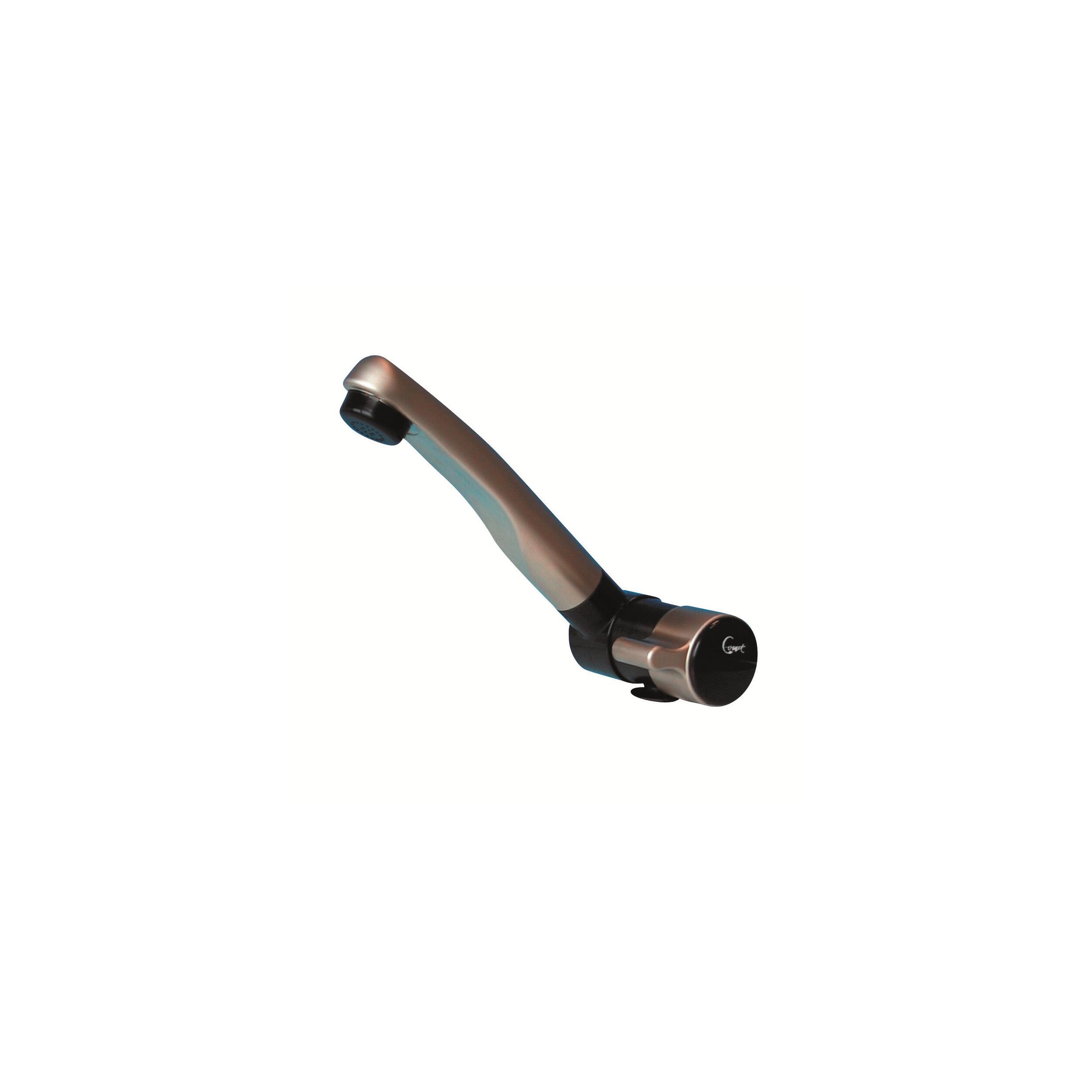 Leur bec rabattable les rend particulièrement adaptés aux hauteurs d'installation inférieures à 40 mm (éviers avec couvercle rabattable). Leur bec réglable (douche ou jet et douche) les rend polyvalents. Ce robinet est disponible en version mitigeur ou robinet.