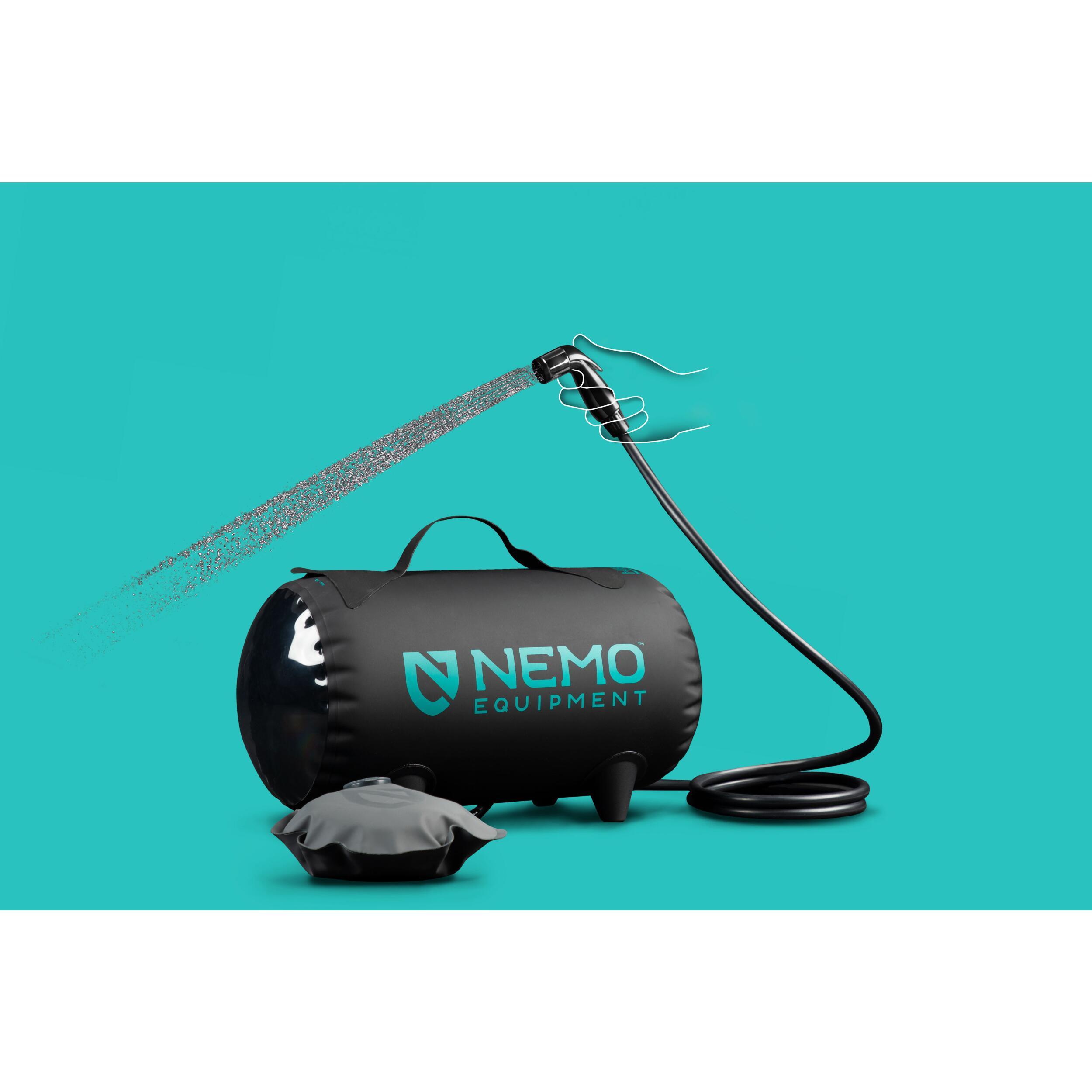 Bien plus pratique qu’une douche solaire que l’on doit suspendre, la douche Nemo HelioPressure est une douche portative de 11 litres, horizontale posée sur ses 4 robustes pieds en plastique, ce qui offre une plus grande stabilité.