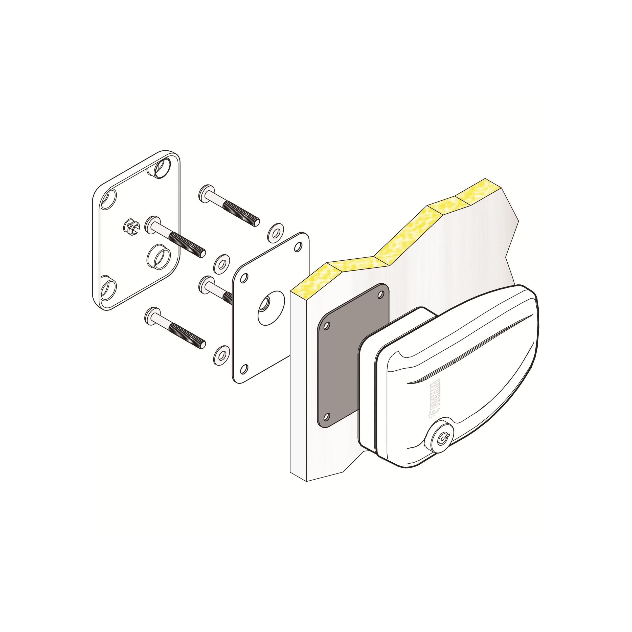 - Safe Door : montage sur la paroi avec 4 vis autotaraudeuses. Livré avec plaque inférieure et cache intérieur.