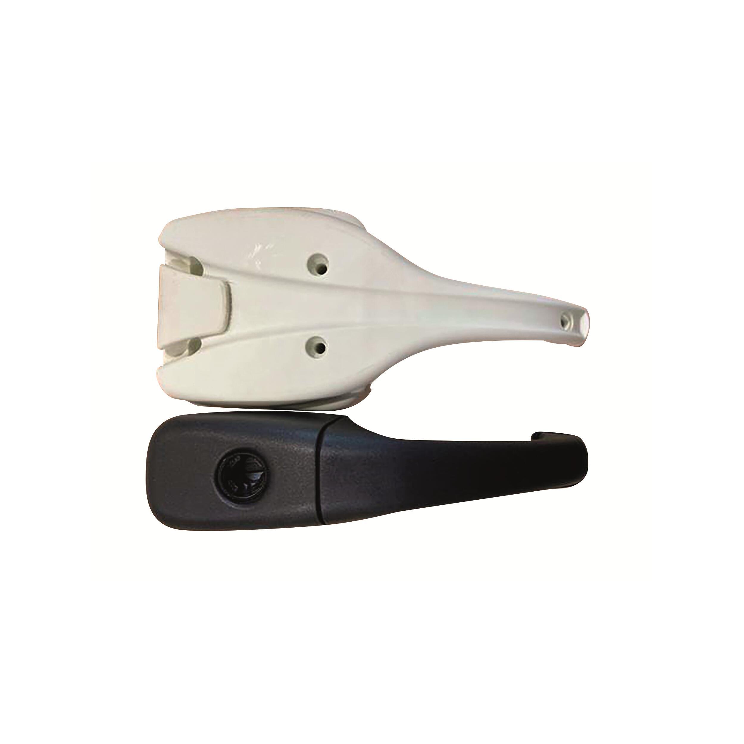 Dim. de la poignée extérieure : 210 x 55 mm. Mécanisme de fermeture en zamak.