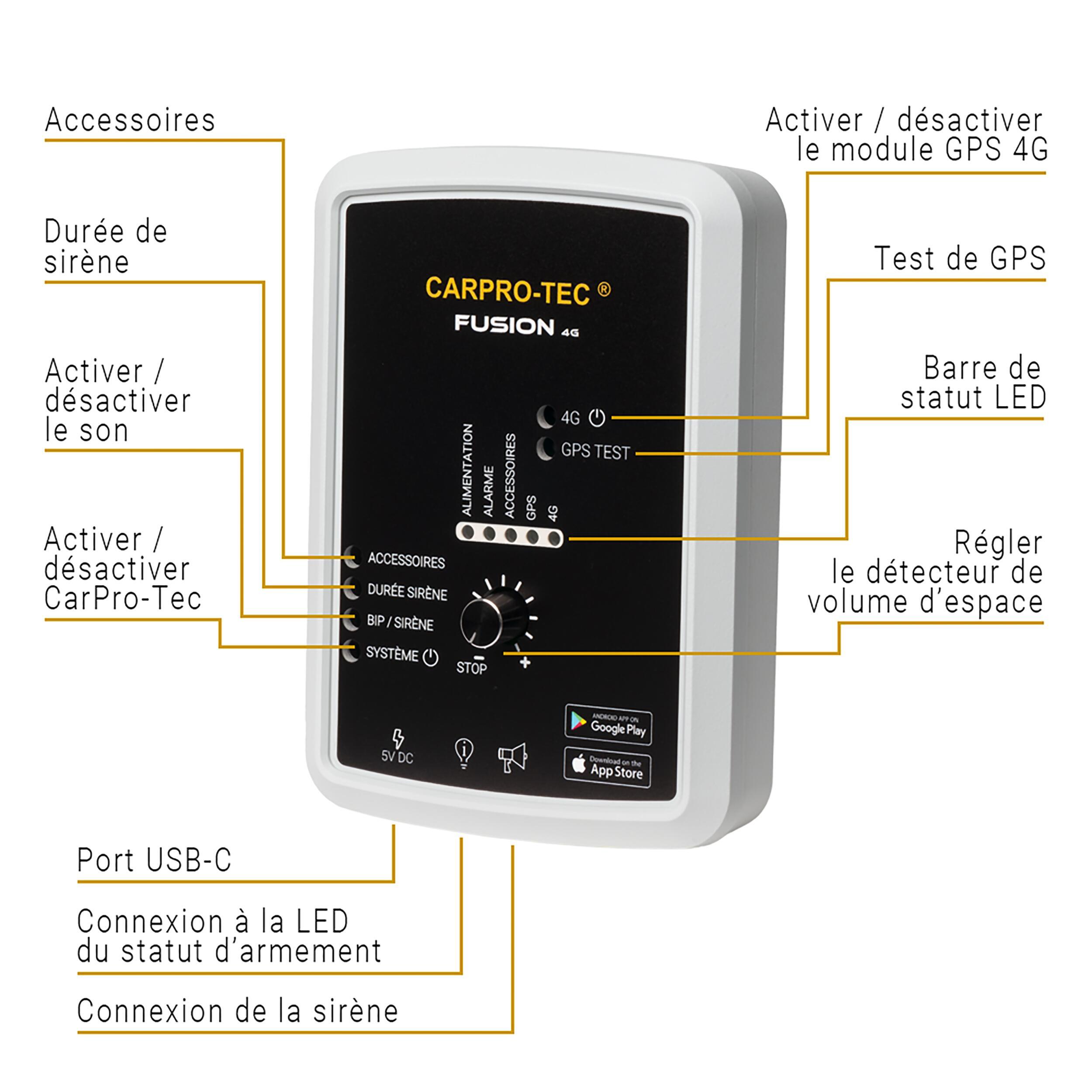 L’un des grands avantages de cette alarme est sa modularité totale : vous pouvez à tout moment l’enrichir avec d’autres composants CarPro-Tec selon vos besoins :