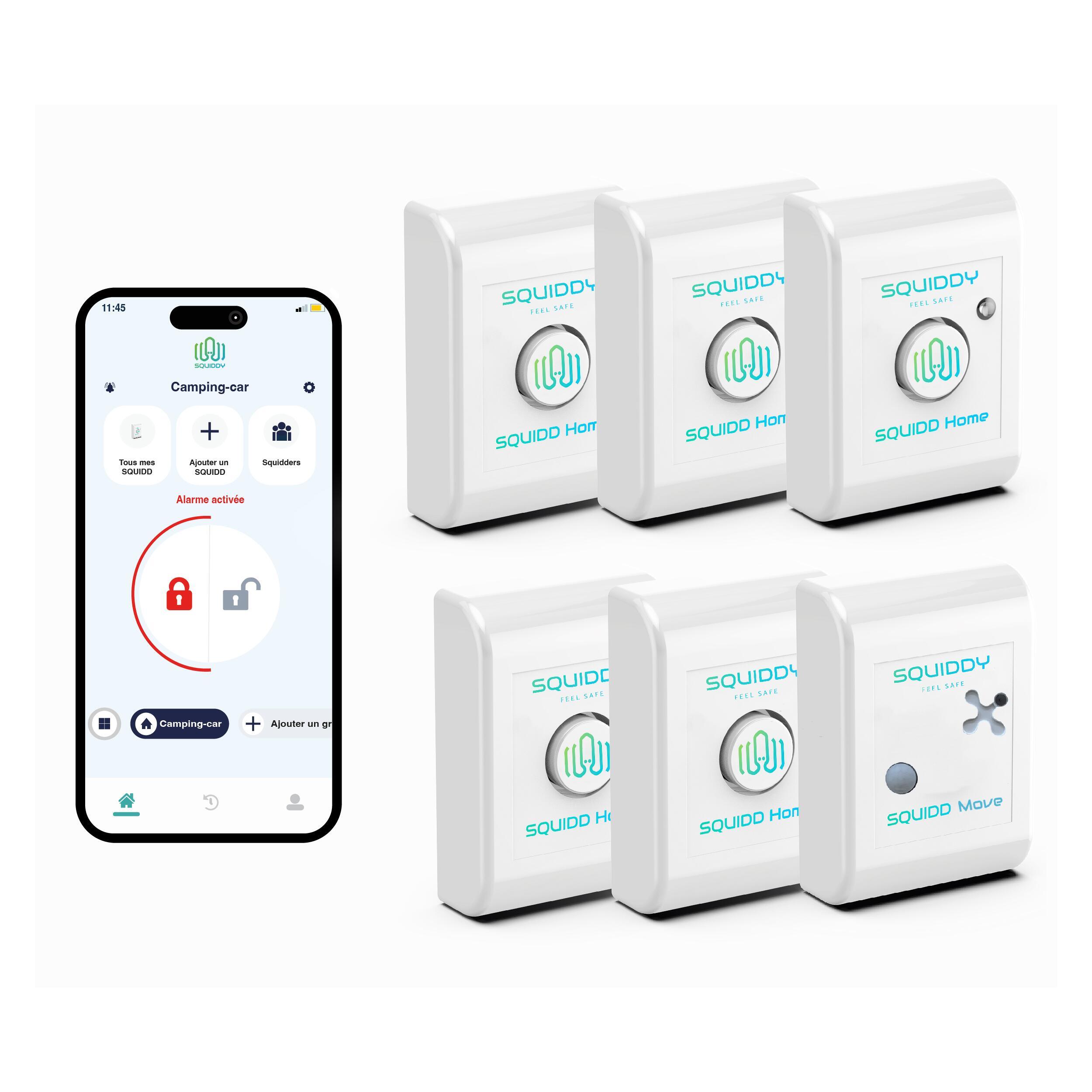 Le Pack Confort SQUIDDY a été spécialement conçu pour les voyageurs soucieux de sécuriser leur véhicule de loisirs, que ce soit un camping-car, un van aménagé ou une caravane. Avec une technologie innovante et une conception compacte, ce pack vous offre une sécurité maximale sans compromis sur la discrétion. Ses deux composants – SQUIDD Home et SQUIDD Move – travaillent ensemble pour surveiller efficacement votre espace, même en votre absence, afin que vous puissiez voyager en toute sérénité.