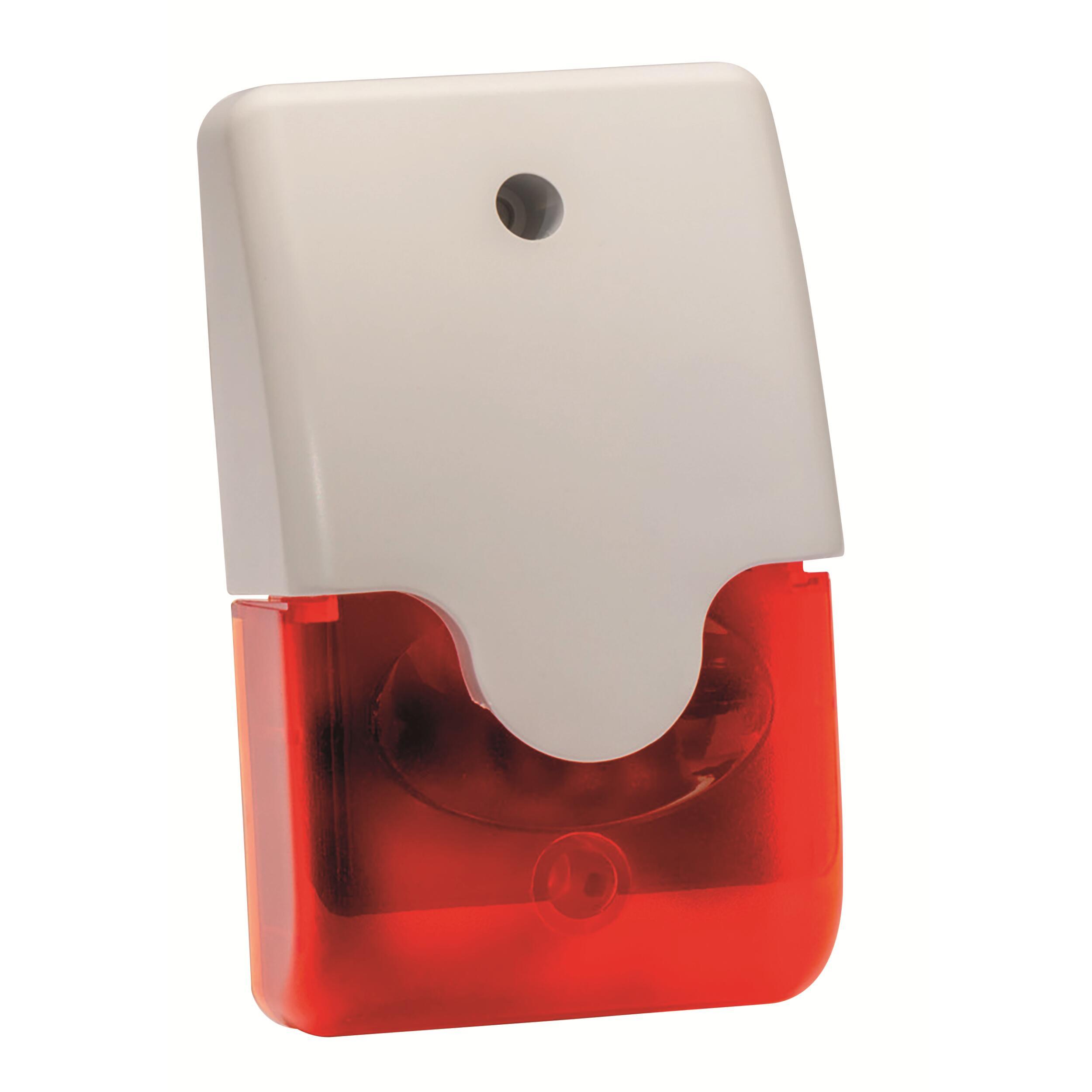 Sirène sans fil avec flash, autonome et rechargeable, pour alarme CarPro-Tec. Facile à installer sans perçage, utilisable en intérieur comme en extérieur. Puissance sonore 105 dB et autonomie de 2 mois.